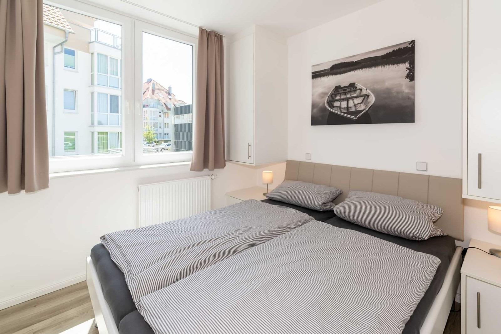 Die Wohnung verfügt über zwei Schlafzimmer, ausgestattet, mit jeweils einem Doppelbett und TV-Gerät.