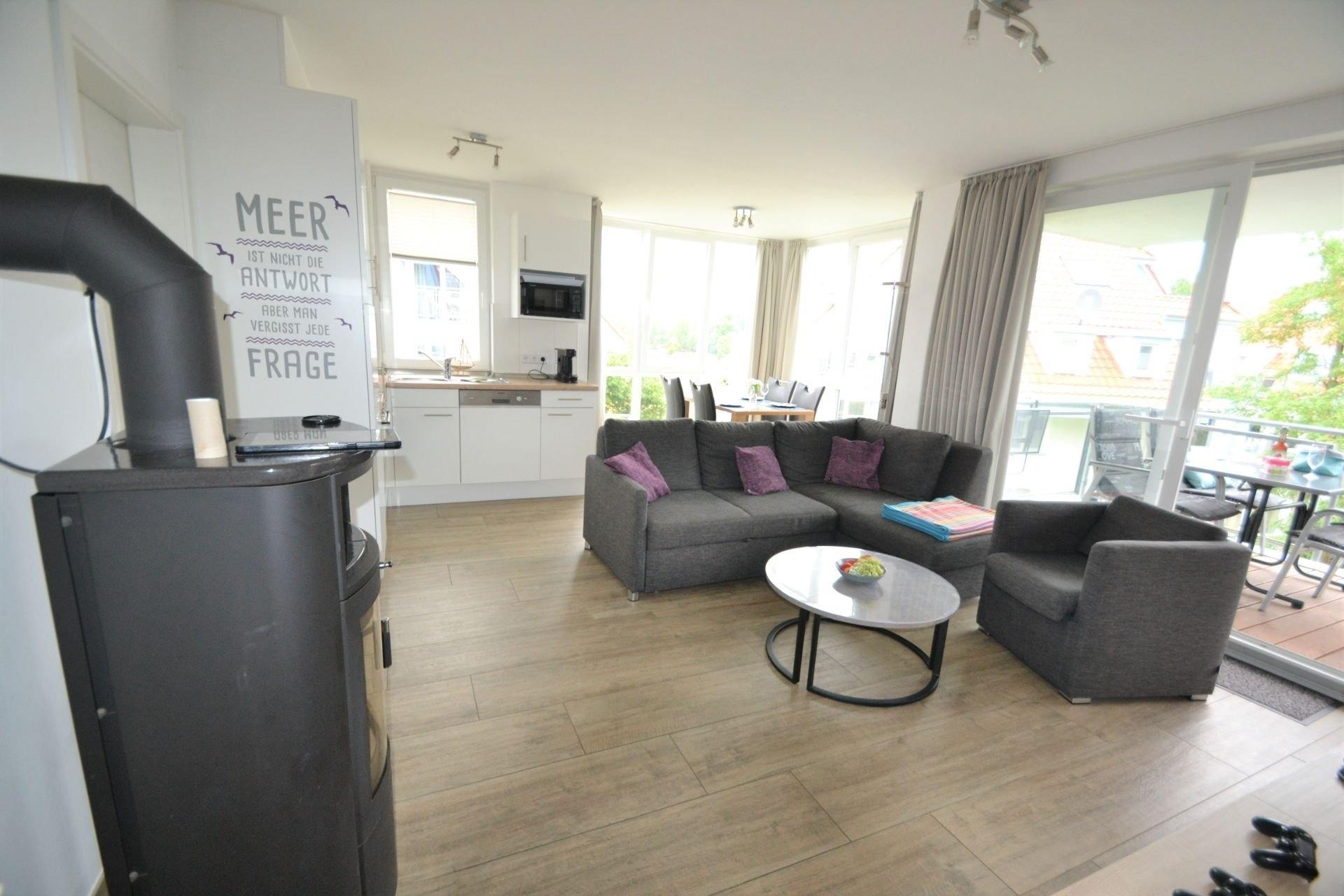 Herzlich willkommen im Meeresrauschen 9! Die Wohnung verfügt über ein Schlafzimmer mit Doppelbett und einem weiteren Schlafzimmer mit Etagenbett. Beide sind jeweils mit TV ausgestattet. Sauna und Wanne bieten erholsame Stunden im Bad. Im gemütlichen Wohnbereich können Sie an der Playstation Ihr Können beweisen, im Internet surfen oder einfach bei kälterem Temperaturen die wohlige Wärme des Kamins genießen.