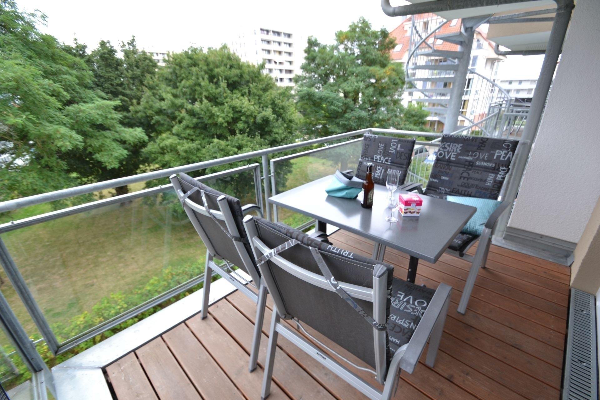 Der Balkon lädt zum Frühstücken oder Grillen ein.
