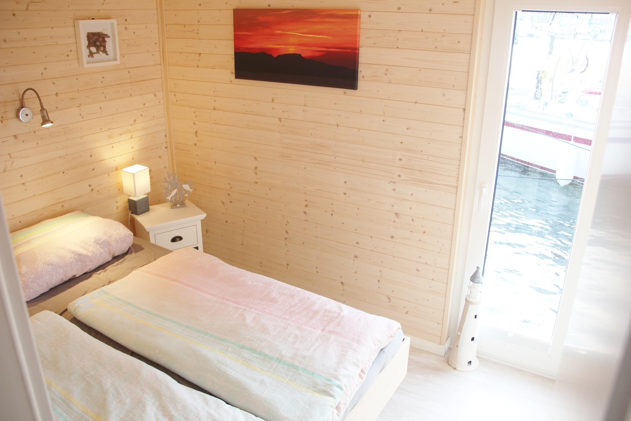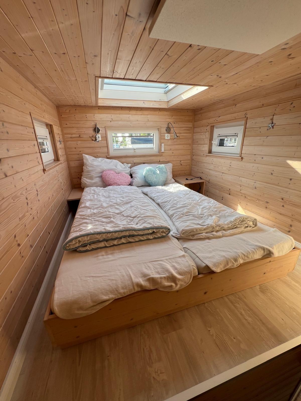 Das besondere Highlight ist der Alkoven. Hier befindet sich der zweite Schlafraum mit Platz für bis zu 2 Personen. Von hier aus haben Sie einen ganz besonderen Ausblick über den Hafen und durch ein großes Dachfenster einen grandiosen Blick auf den Sternenhimmel. Dieser Raum ist über eine Treppe vom Innenbereich zu erreichen und verfügt über einen eigenen Fernseher.
