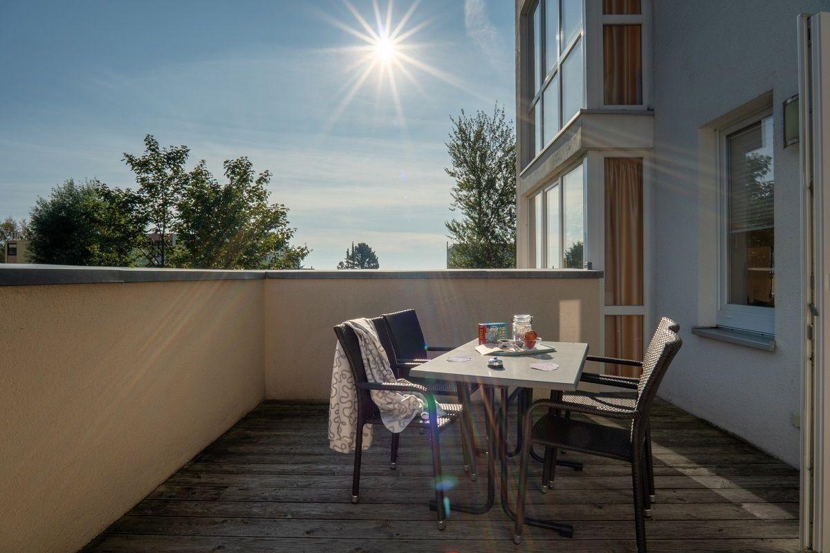 Es steht ein Balkon mit Gartenmöbeln zur Verfügung.