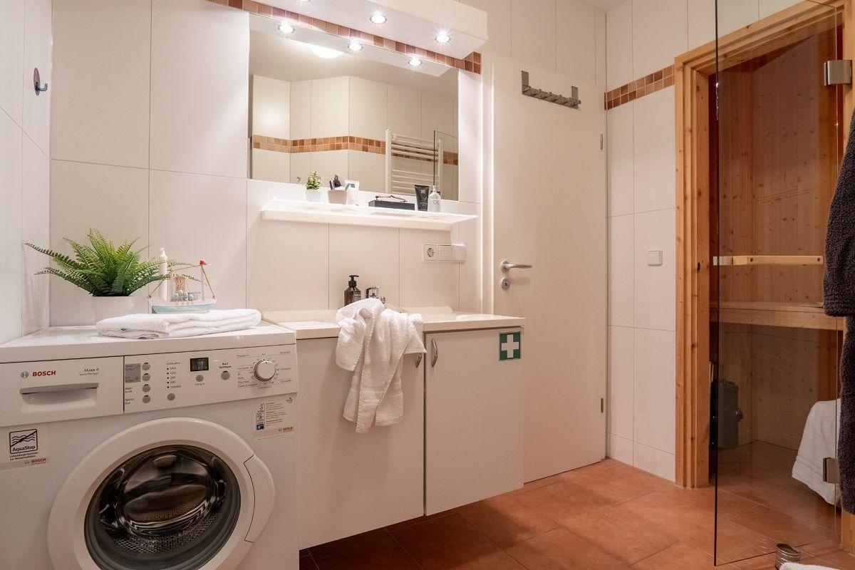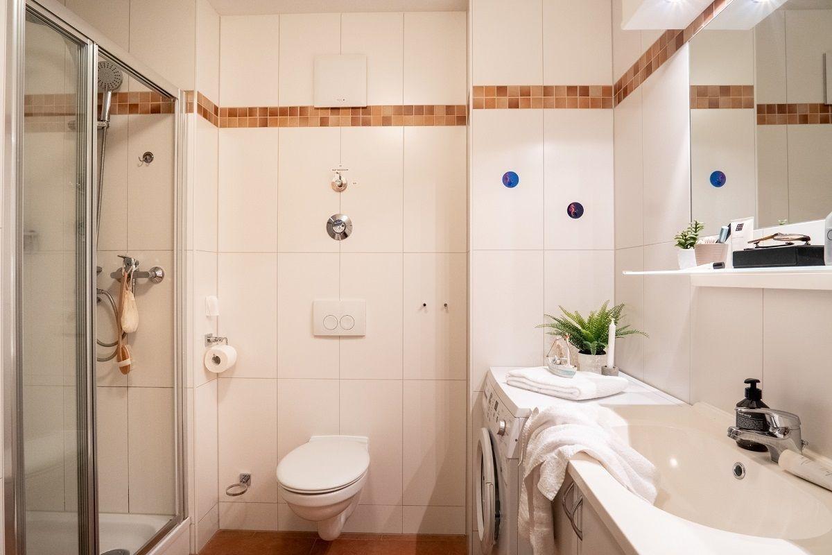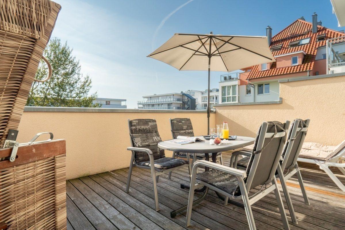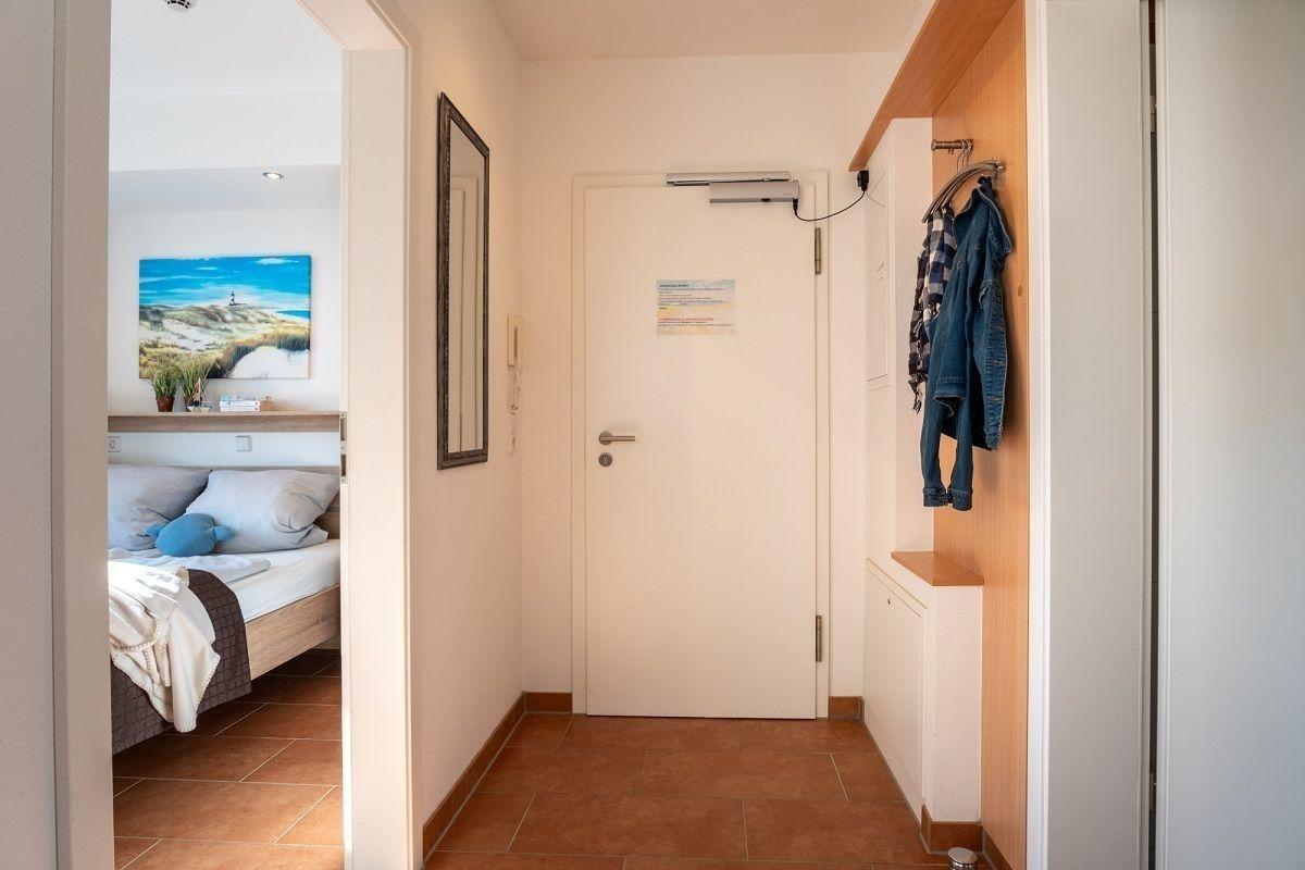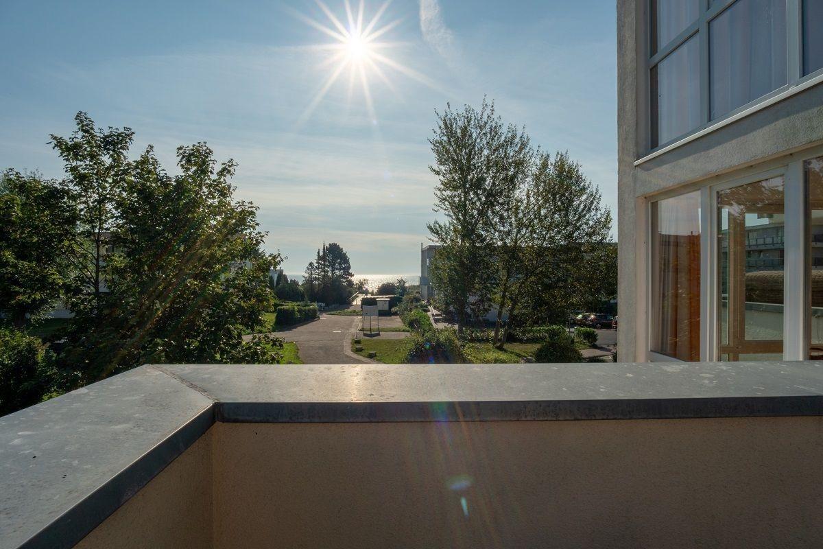 Die Wohnung verfügt über einen lichtdurchfluteten Wohnbereich mit einer gemütlichen Sitzecke mit Kaminofen, einer Essecke mit Blick ins Grüne und der angrenzenden offenen Küchenzeile. Vom Wohnbereich aus gelangt man auf den Balkon - man kann die Ostsee schon riechen. Im beiden Schlafzimmern erwartet Sie je ein gemütliches Doppelbett. Für Wellnessfans ist das Badezimmer bestens geeigent: eine eigene Sauna gehört neben einer Dusche ebenfalls zur Ausstattung.