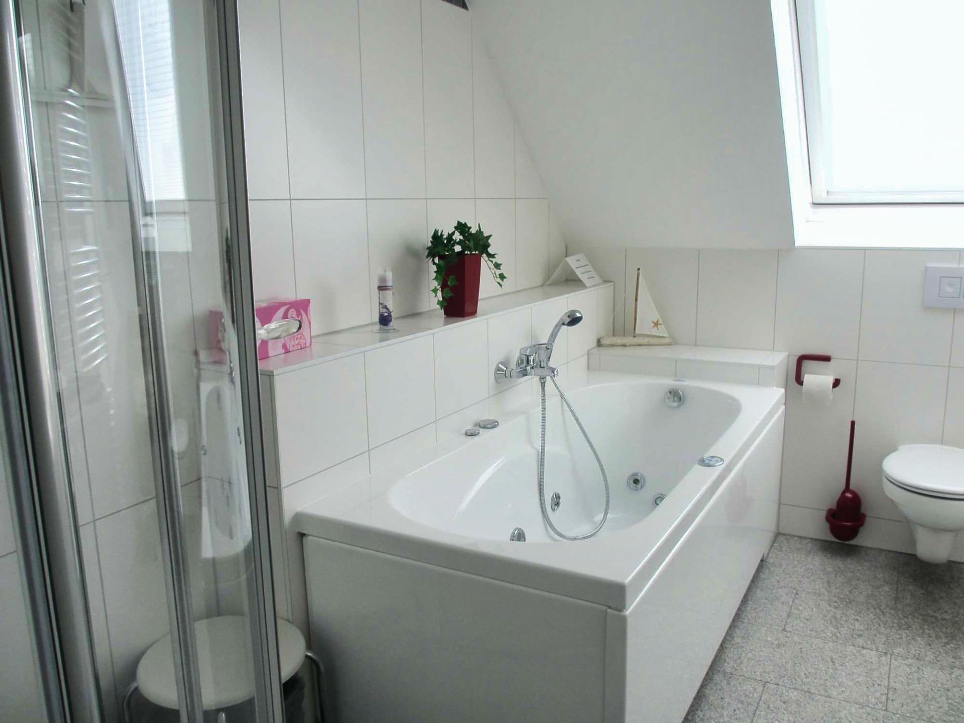 Unser schönes Penthouse liegt im Strandpark Großenbrode, hoch über den Dächern des Südstrandes. Hier genießen Sie zu jeder Jahreszeit den Luxus unserer Wohnung. Im Sommer auf der Dachterrasse frühstücken, im Winter im Whirlpool relaxen – hier können Sie den Stress des Alltags vergessen und mal richtig ausspannen! Zusatzausstattung des Badezimmers: Steckdosenradio, Föhn und Besenschrank.