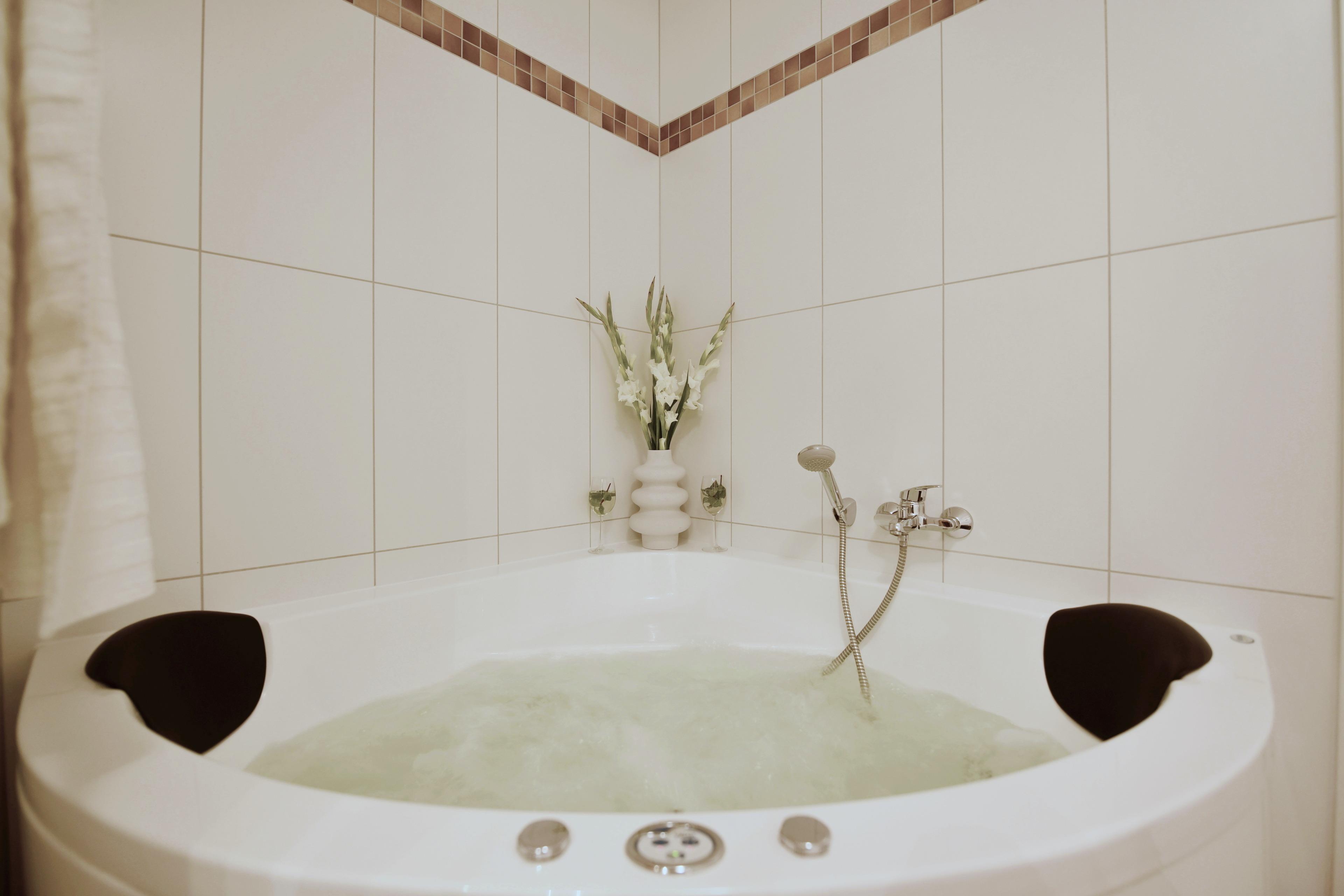 Ein Highlight ist das luxuriös ausgestattete Badezimmer. Neben einer Dusche verfügt es auch über einen Whirlpool und eine Sauna! Selbstverständlich stehen auch Föhn, ausreichend Ablagefläche, ein Handtuchheizkörpertrockner und eine Waschmaschine für Sie bereit.