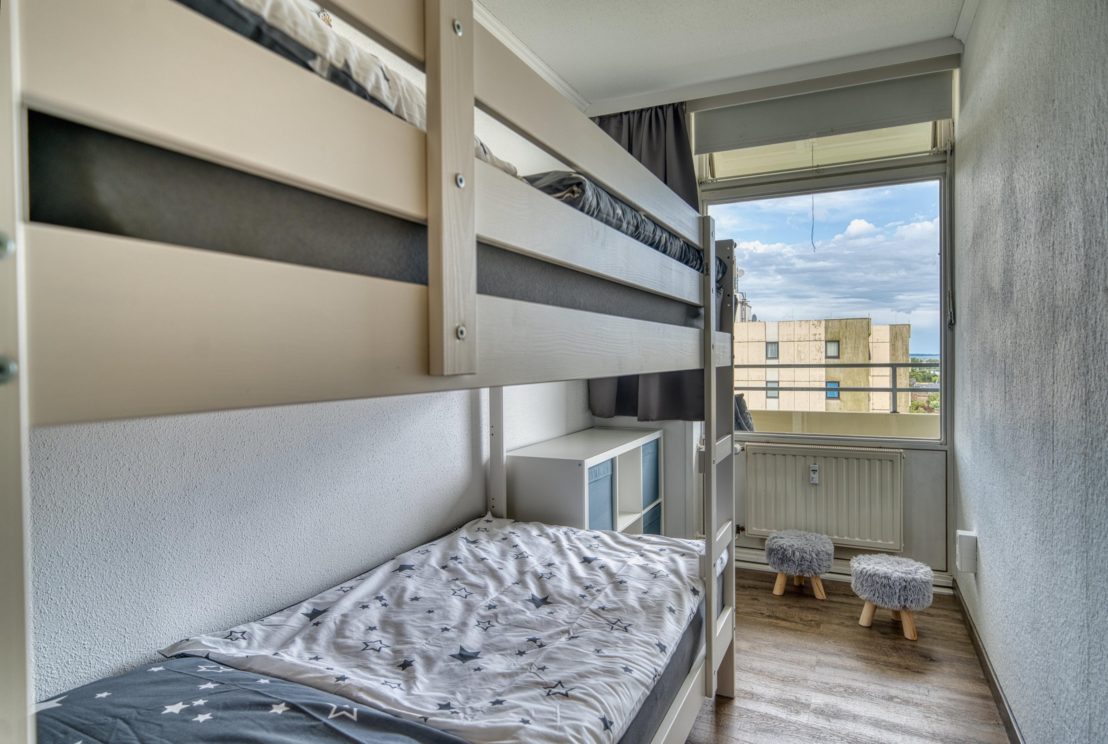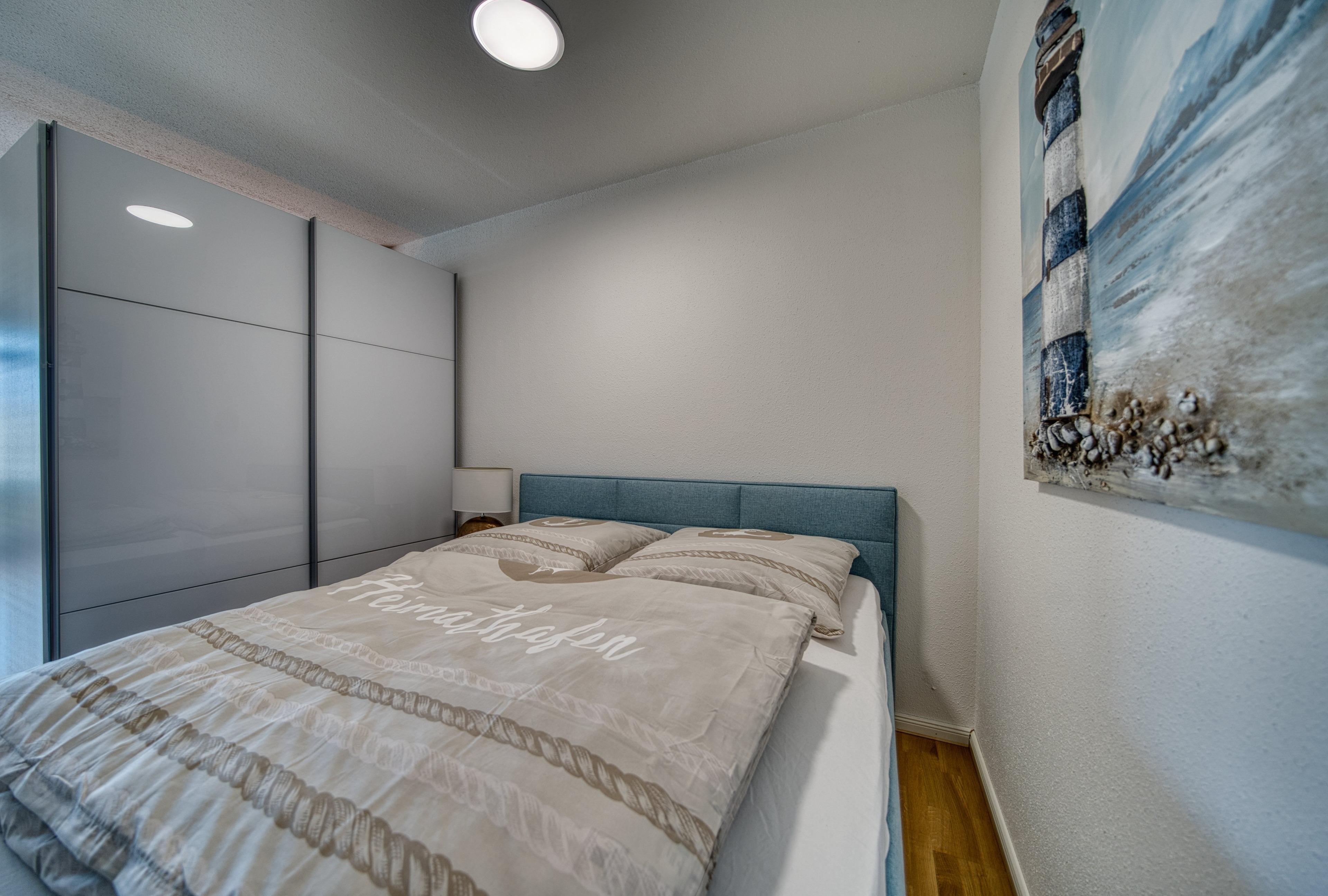 Die Ferienwohnung verfügt über ein gemütliches Schlafzimmer mit Doppelbett, ideal für Eltern und ein separates Kinderzimmer mit Etagenbett und Fenster sorgt für Privatsphäre und entspannte Nächte bei den Kleinen.