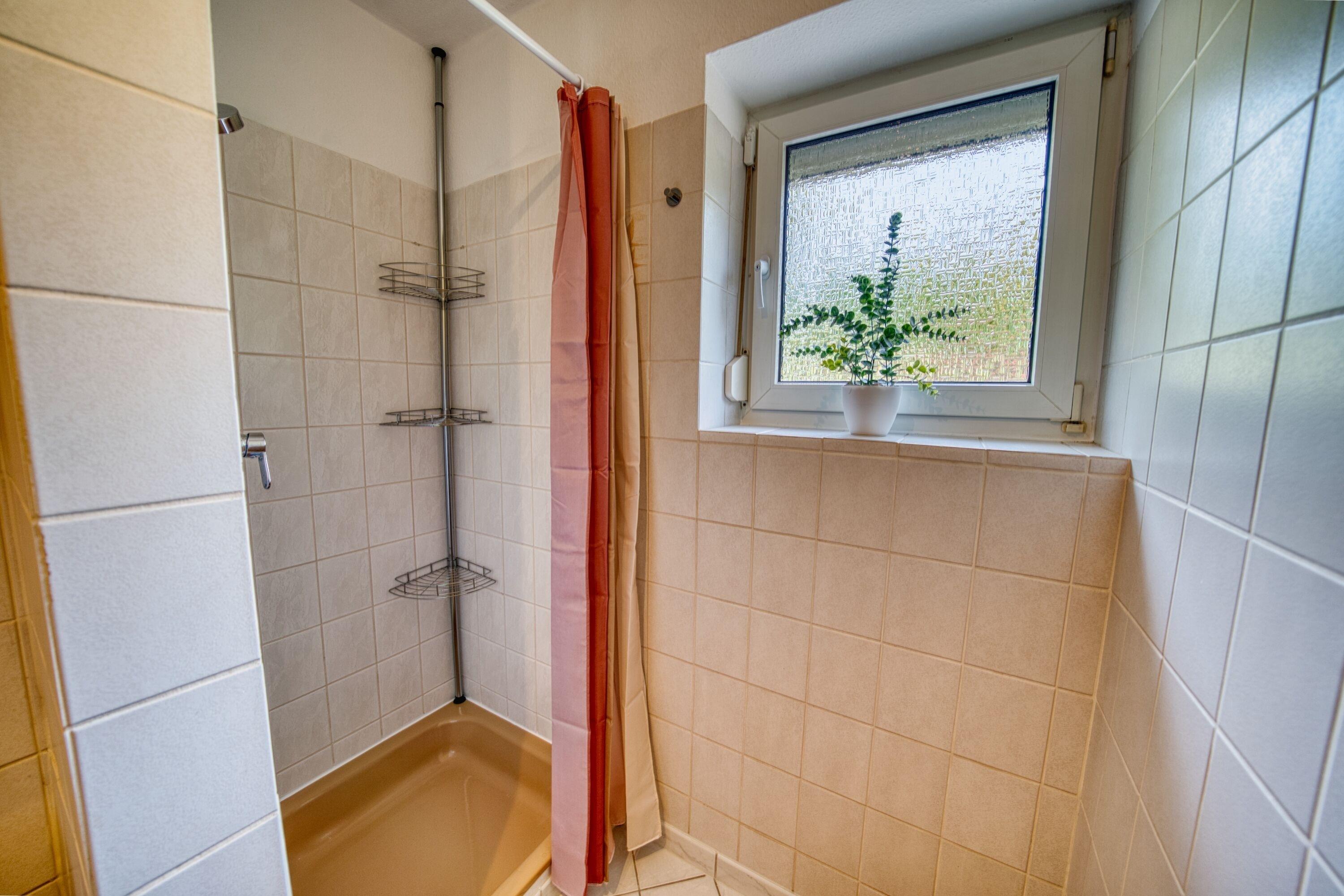 Badeværelse med bruser og badekar
