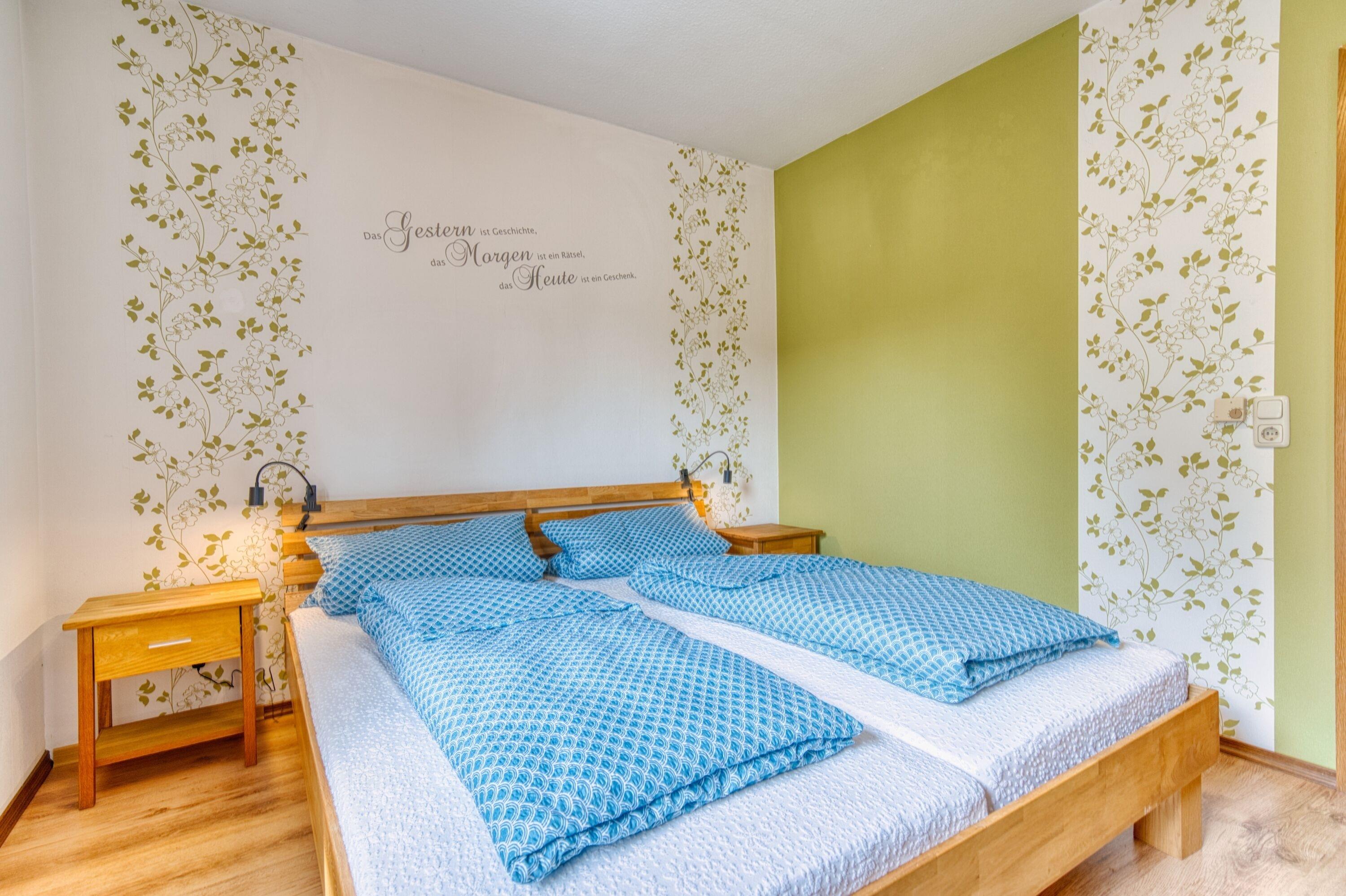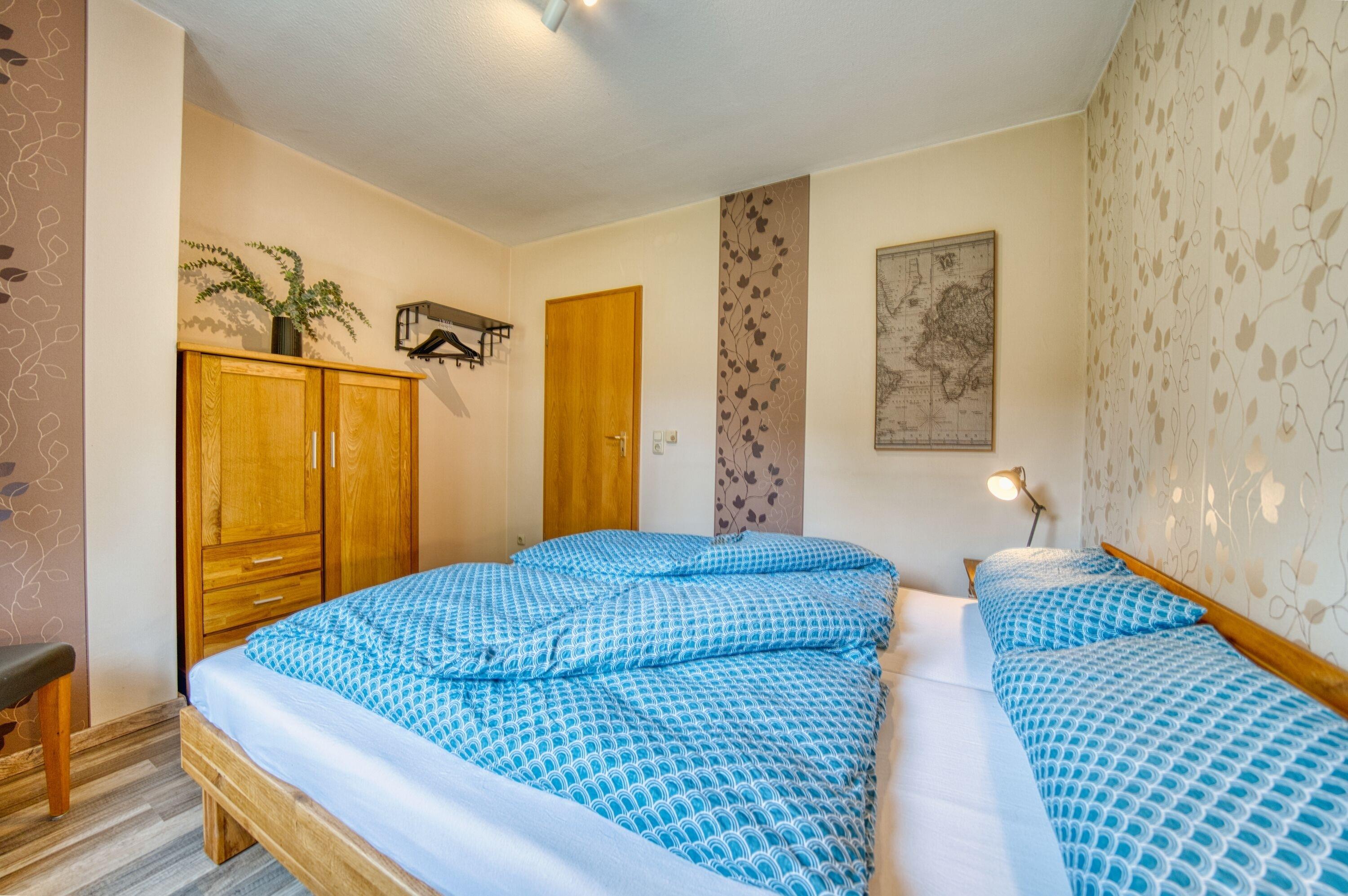 Die Ferienwohnung verfügt über ein gemütliches Schlafzimmer mit einem komfortablen Doppelbett (200x180) sowie ein Gästezimmer mit Doppelbett (160x200cm). Im großzügigen Wohnzimmer finden Sie ein Schlafsofa (200x160), perfekt für zusätzliche Gäste oder Kinder.