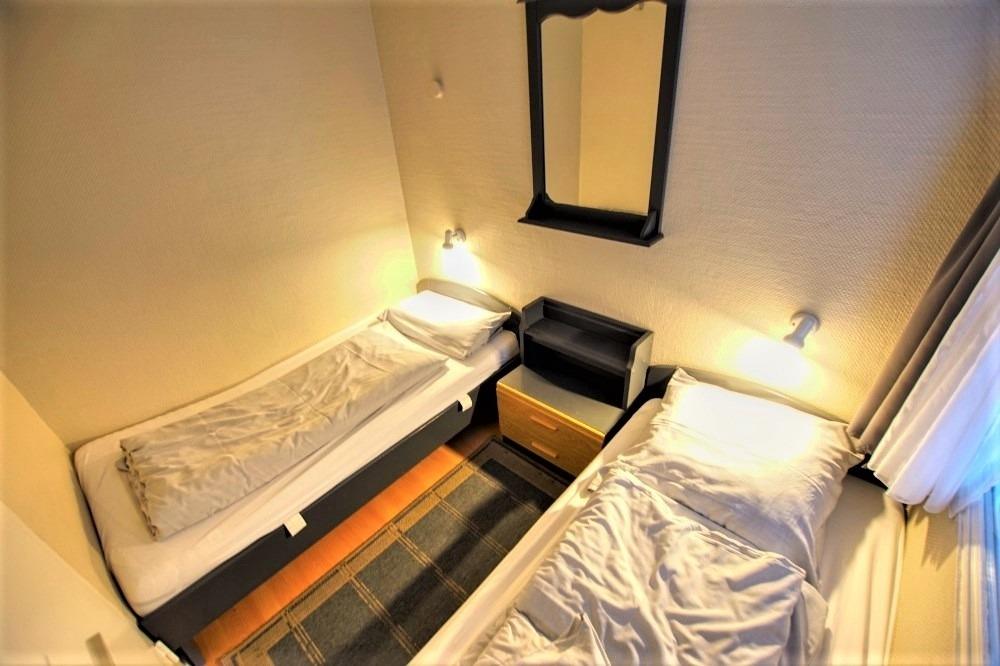 Elternschlafbereich mit zwei Einzelbetten – privat und separat durch eine Tür getrennt vom Rest der Wohnung