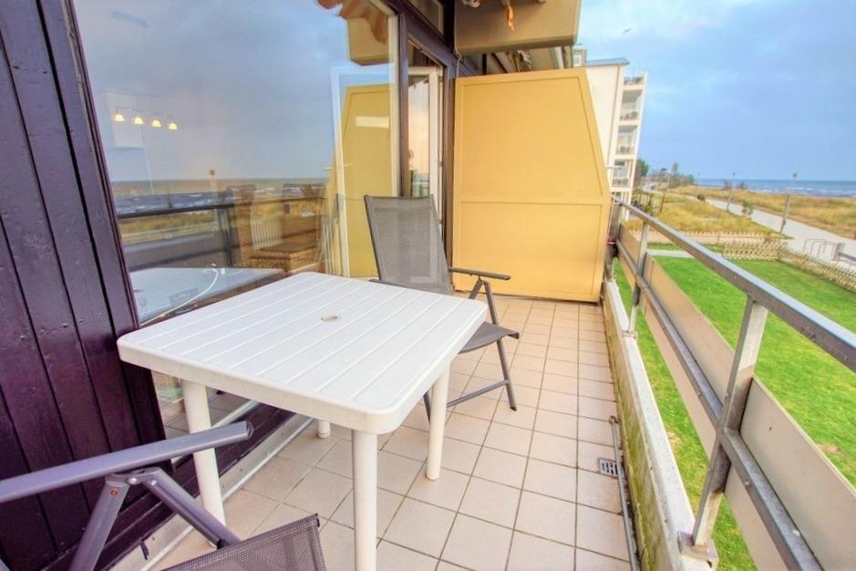 Balkon: Mit Sitzgelegenheit für 4 Personen, Blick auf Strandpromenade [&] Ostsee