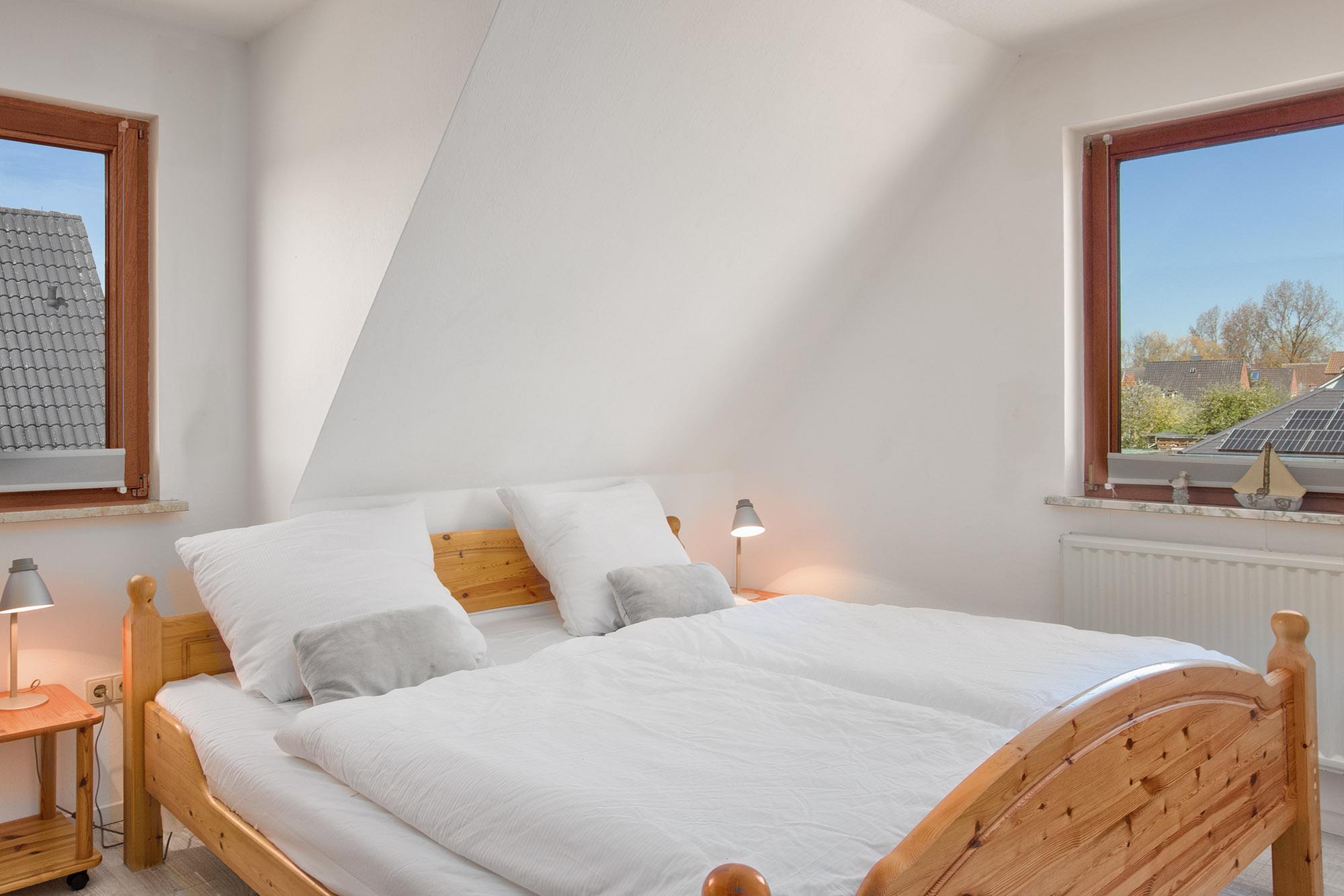 Die schöne, helle Wohnung bietet viel Platz und ist modern eingerichtet. Wohnfreundliche Möbel, LCD-TV und CD-Player sorgen für Wohlbefinden. Der Wohnbereich ist mit einem Laminat-Fußboden ausgestattet. Sie ist besonders interessant für Familien oder max. 4 Erwachsene und 1 Kleinkind, da sie über 1 Schlafzimmer mit Doppelbett und 1 Schlafzimmer mit Einzelbetten verfügt. Hochstuhl und Reisebettchen sind vorhanden. Das Badezimmer mit Dusche ist hell gefliest. Die Küche mit kleinem Essbereich, ist mit einem Herd mit vier Platten, Backofen, Mikrowelle, Kaffeemaschine, Wasserkocher etc. ausgestattet. Ebenso können Fahrräder gegen eine kleine Gebühr genutzt werden.