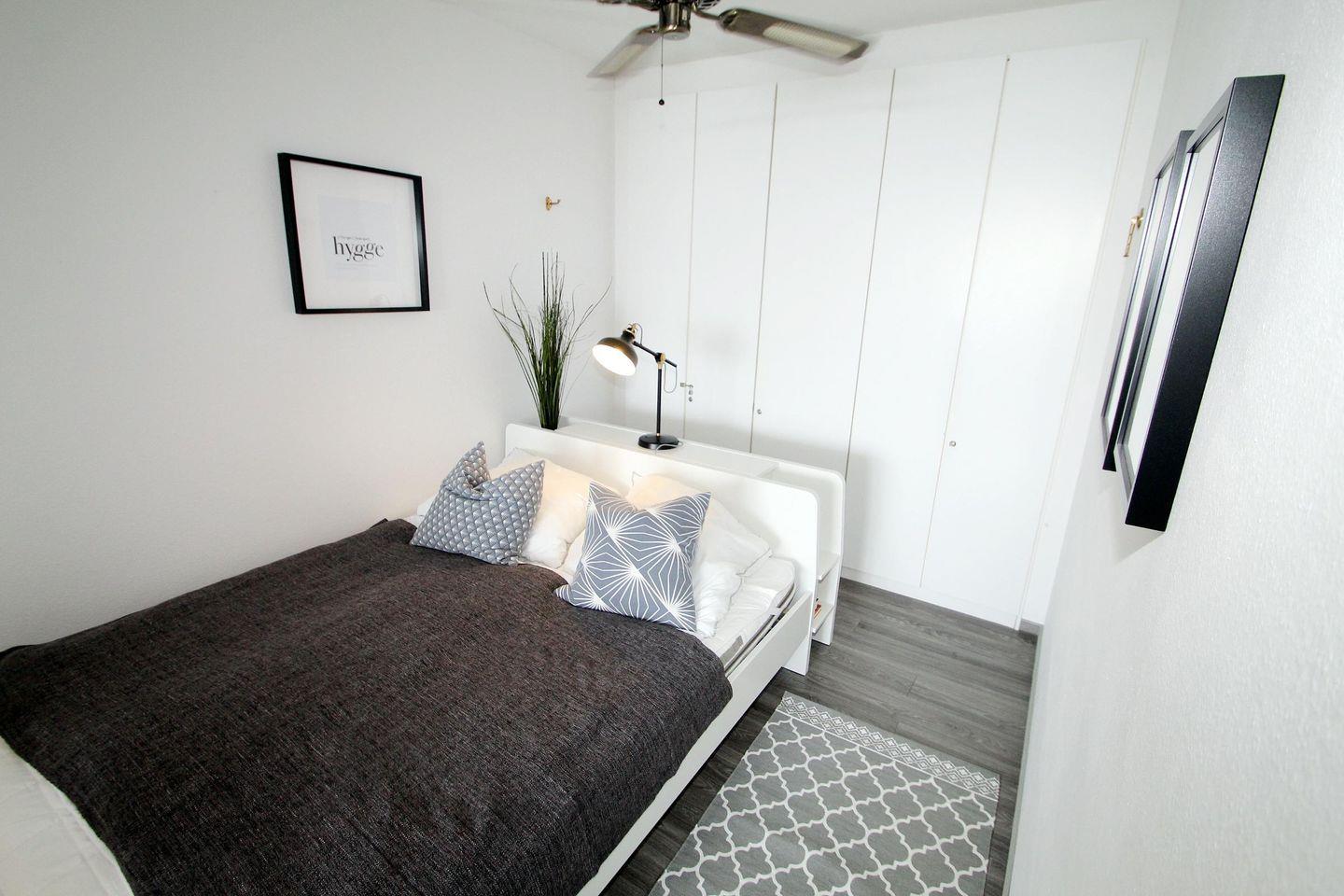 Die 2-Zimmer Wohnung teilt sich in Wohnbereich mit Doppelbett (140*200 cm) und separates Schlafzimmer mit Ausziehbett (2*80*200 cm) auf. Im Schlafbereich mit Doppelbett, welcher durch einen Vorhang zum Wohnbereich abgegrenzt ist, sorgt ein großer Deckenventilator auch bei heißen Nächten für Erfrischung. Ein großer Kleiderschrank steht hier für Ihre Kofferinhalte zur Verfügung.