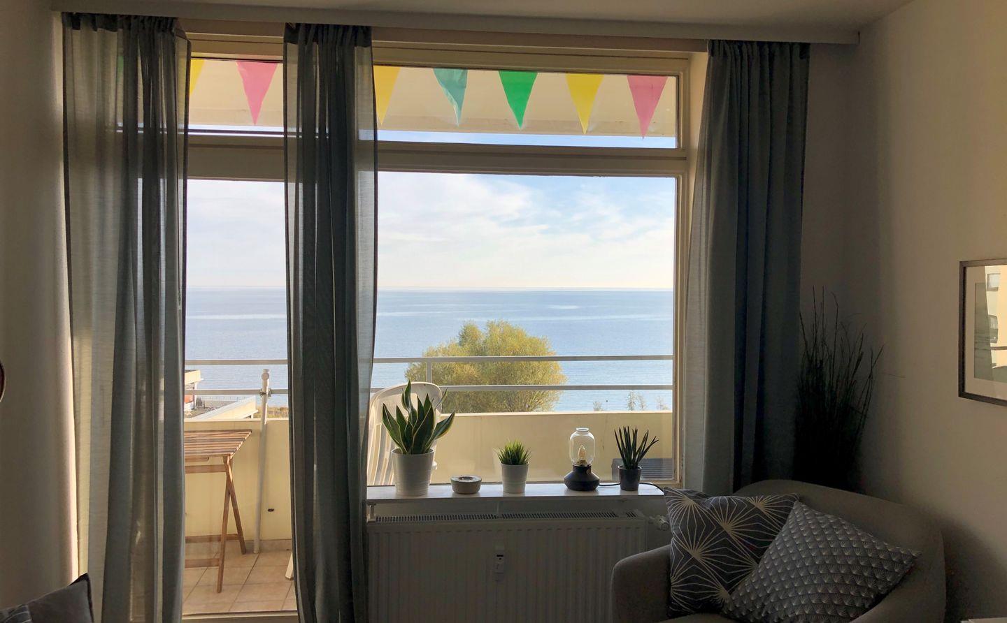 Der möblierte Südbalkon schenkt Ihnen einen unverbauten Frontalblick auf das Meer und verwöhnt Sie mit extra vielen Sonnenstunden. Ob zum Frühstück oder zum Kaffee am späten Nachmittag: Hier genießen Sie die Sonne und die Aussicht auf die glitzernde Ostsee aus dem 7. Stockwerk fast den ganzen Tag. Vom separaten Schlafzimmer schauen Sie ebenfalls direkt auf das Meer. Eine Musikanlage und ein Wäscheschrank gehören in diesem Raum zur weiteren Ausstattung.