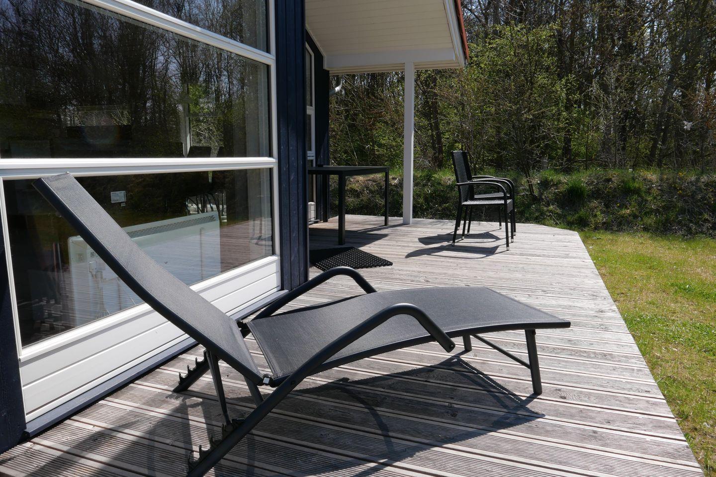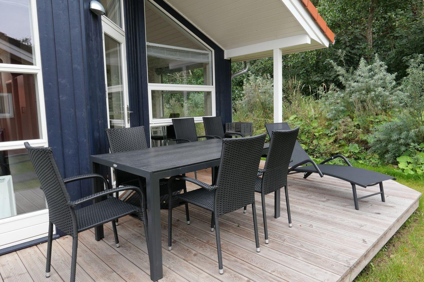Vom Wohnbereich aus haben Sie Zugang zur teils überdachten, mit Gartentisch und Stühlen möblierten Terrasse, auf der Sie die langen Sommerabende genießen können. 2 Sonnenliegen stehen Ihnen ebenfalls zur freien Verfügung.