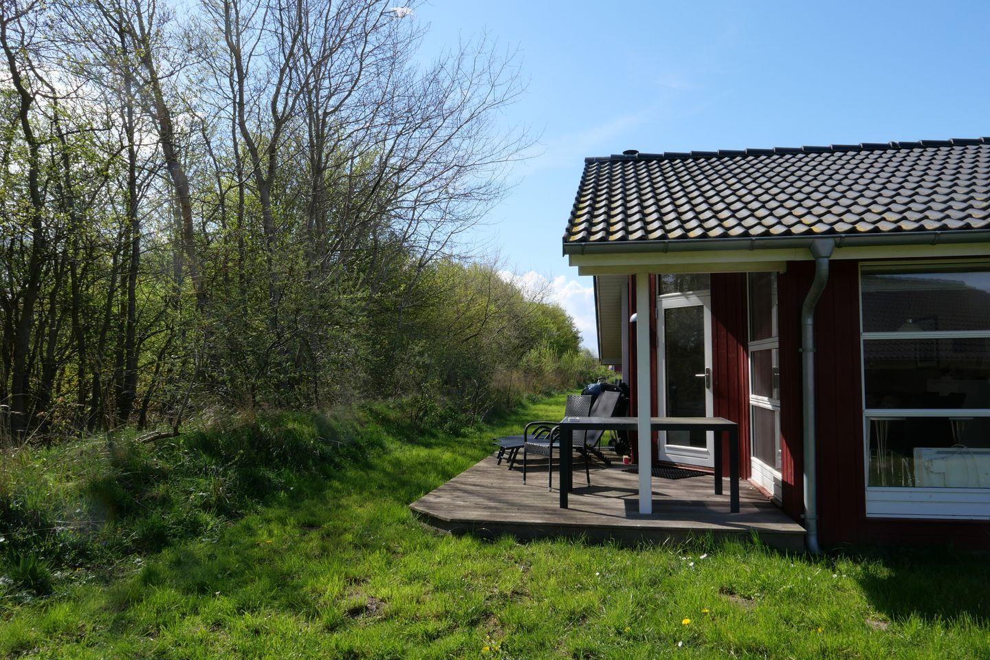 Vom Wohnbereich aus haben Sie Zugang zur teils überdachten, mit Gartentisch und Stühlen möblierten Terrasse, auf der Sie die langen Sommerabende genießen können. 2 Sonnenliegen stehen Ihnen ebenfalls zur freien Verfügung.