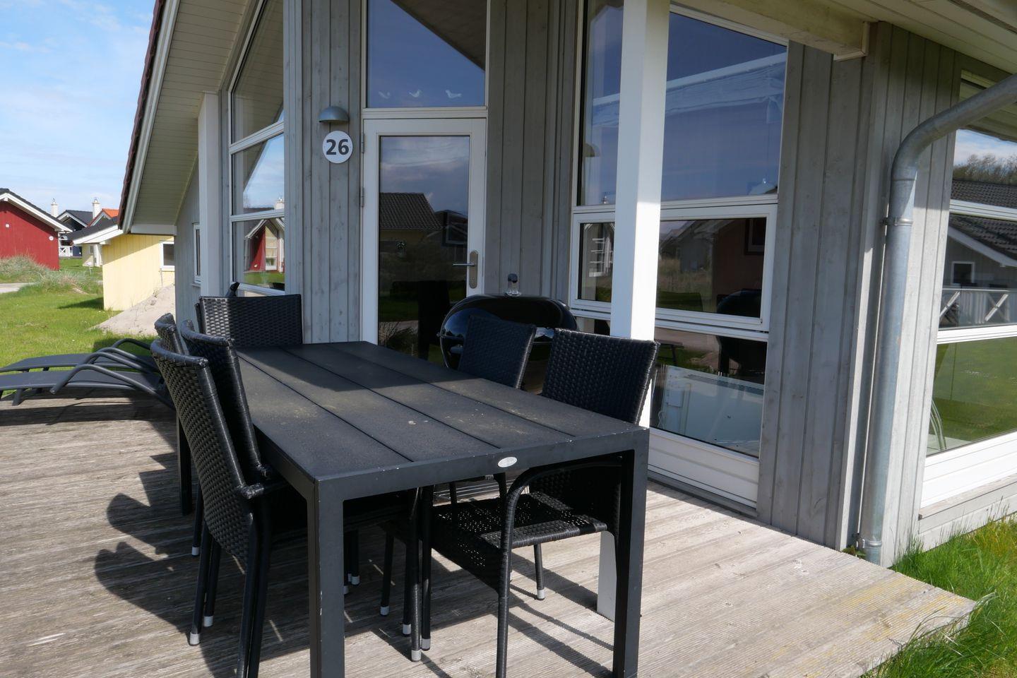 Vom Wohnbereich aus haben Sie Zugang zur teils überdachten, mit Gartentisch und Stühlen möblierten Terrasse, auf der Sie die langen Sommerabende genießen können. 2 Sonnenliegen stehen Ihnen ebenfalls zur freien Verfügung.