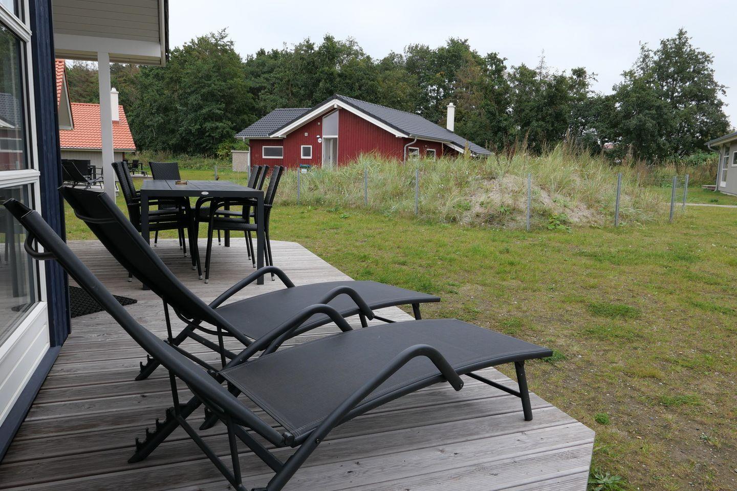 Vom Wohnbereich aus haben Sie Zugang zur teils überdachten, mit Gartentisch und Stühlen möblierten Terrasse, auf der Sie die langen Sommerabende genießen können. 2 Sonnenliegen stehen Ihnen ebenfalls zur freien Verfügung.