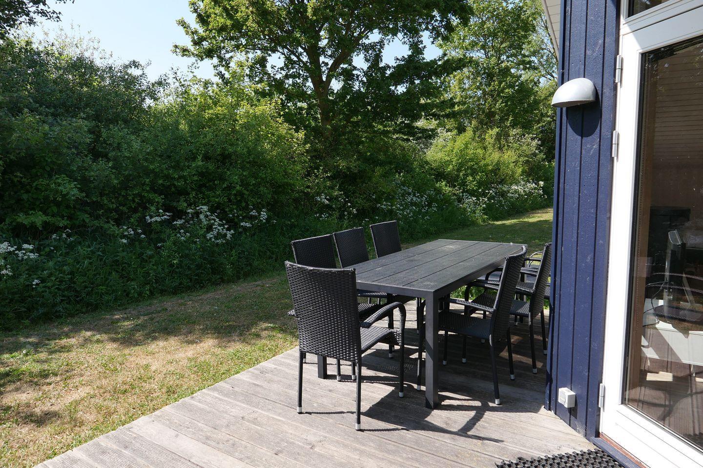 Vom Wohnbereich aus haben Sie Zugang zur teils überdachten, mit Gartentisch und Stühlen möblierten Terrasse, auf der Sie die langen Sommerabende genießen können. 2 Sonnenliegen stehen Ihnen ebenfalls zur freien Verfügung.