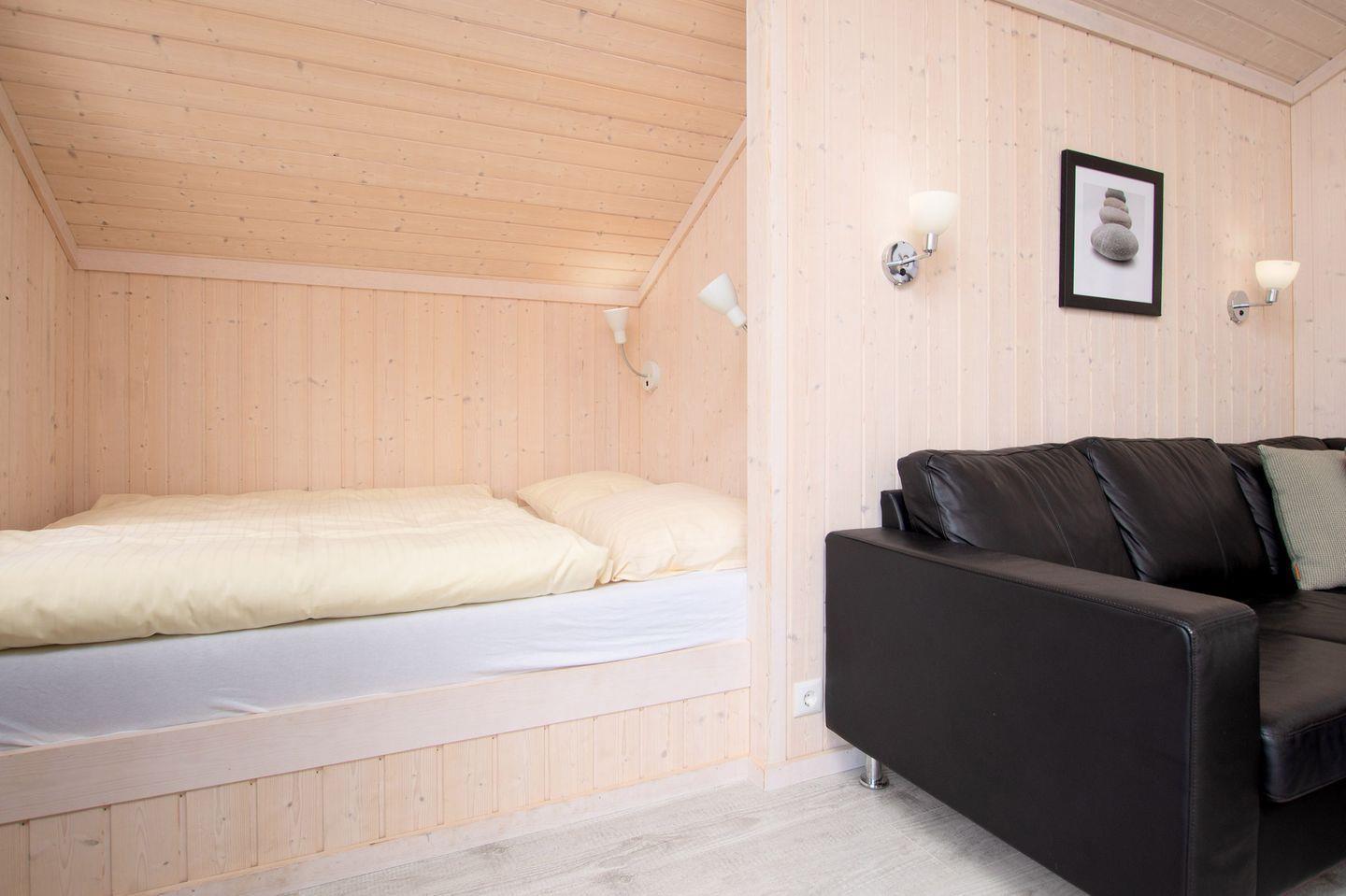 Mit 3 nebeneinander liegenden Schlafzimmern und dem Alkoven befinden sich Schlafplätze für max. 8 Personen im Haus. 2 Schlafzimmer verfügen über Doppelbetten, 1 Schlafzimmer über 2 Einzelbetten und der bei Kindern und Teenagern beliebte Alkoven ist mit einen weiteren Doppelbett ausgestattet. Ein Kinderbett und ein Kinderhochstuhl gehört zum Haus.