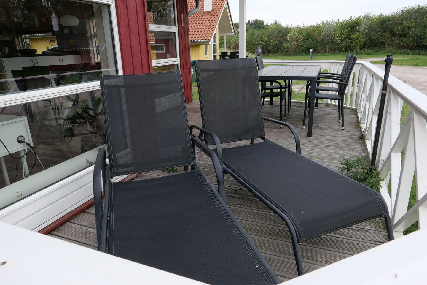 Vom Wohnbereich aus haben Sie Zugang zur teils überdachten, mit Gartentisch und Stühlen möblierten Terrasse, auf der Sie die langen Sommerabende genießen können. 2 Sonnenliegen stehen Ihnen ebenfalls zur freien Verfügung.