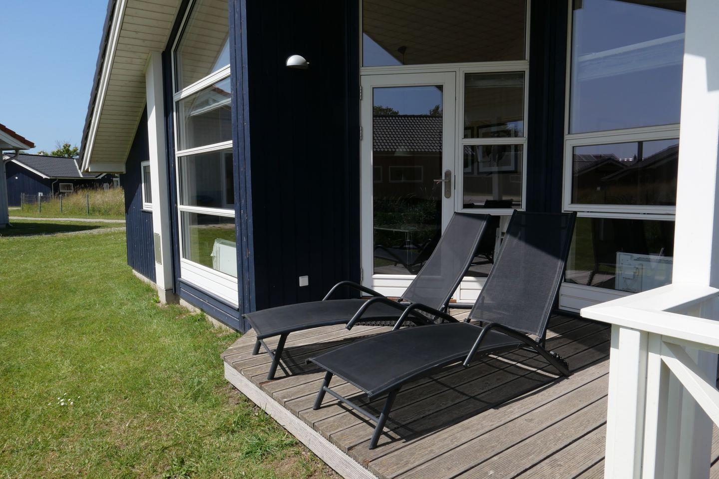 Vom Wohnbereich aus haben Sie Zugang zur teils überdachten, mit Gartentisch und Stühlen möblierten Terrasse, auf der Sie die langen Sommerabende genießen können. 2 Sonnenliegen stehen Ihnen ebenfalls zur freien Verfügung.