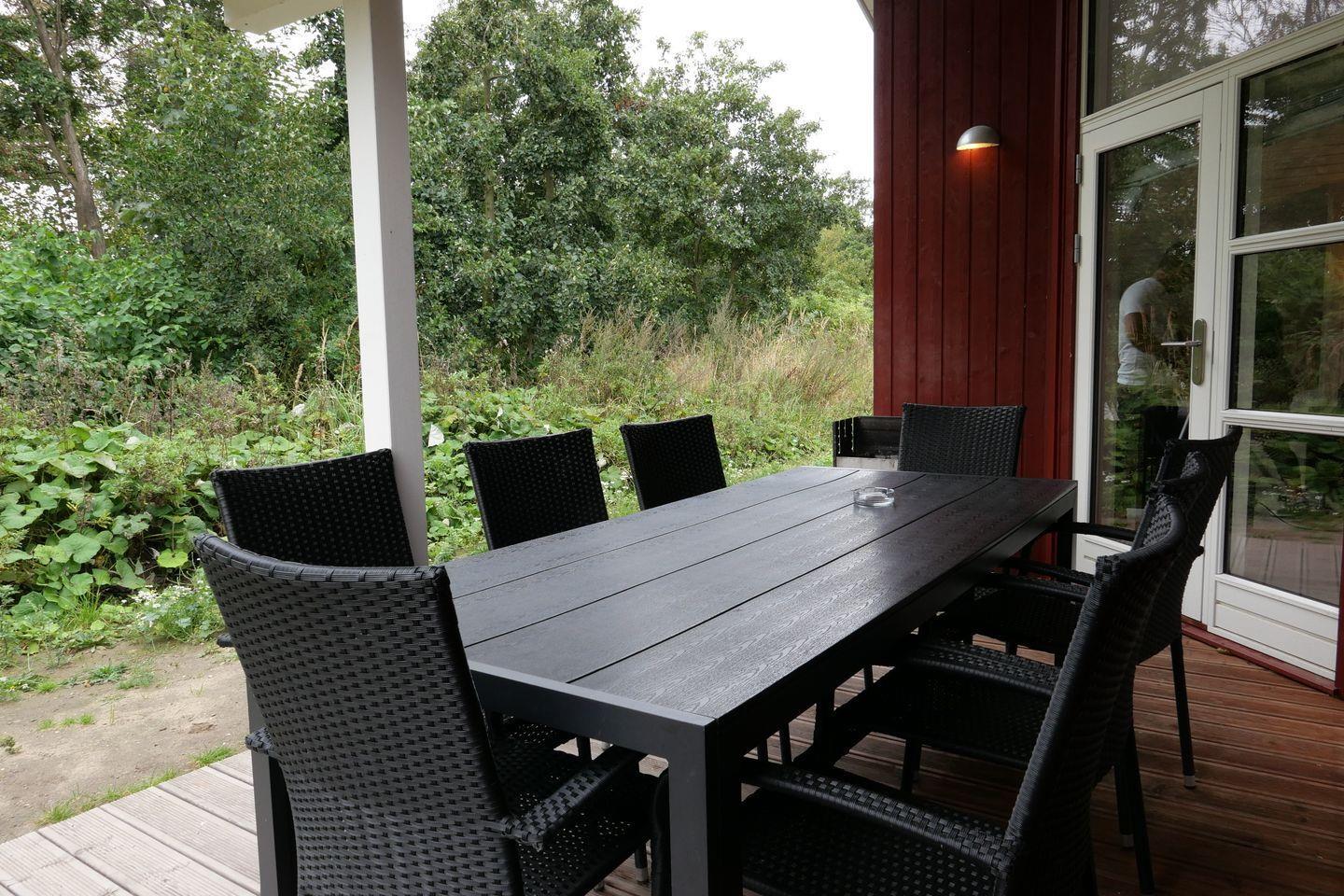 Vom Wohnbereich aus haben Sie Zugang zur teils überdachten, mit Gartentisch und Stühlen möblierten Terrasse, auf der Sie die langen Sommerabende genießen können. 2 Sonnenliegen stehen Ihnen ebenfalls zur freien Verfügung.