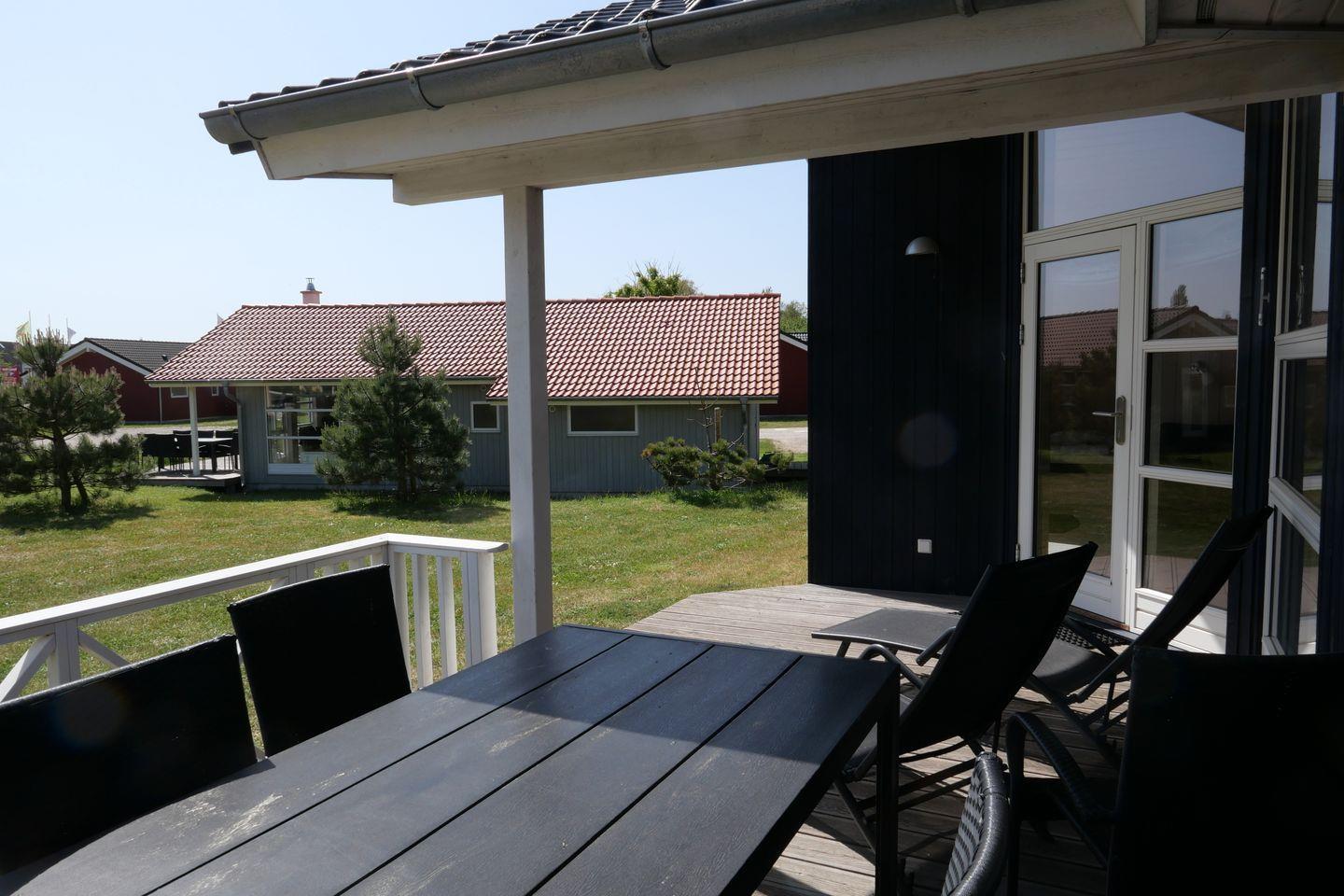 Vom Wohnbereich aus haben Sie Zugang zur teils überdachten, mit großem Gartentisch und Stühlen möblierten Terrasse, auf der Sie die langen Sommerabende genießen können. 2 Sonnenliegen stehen Ihnen ebenfalls zur freien Verfügung.