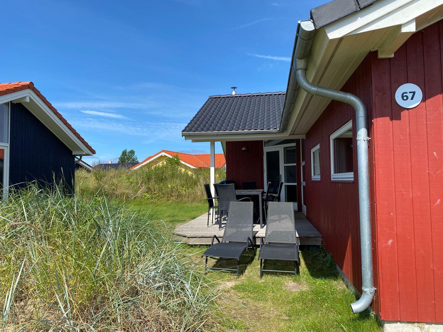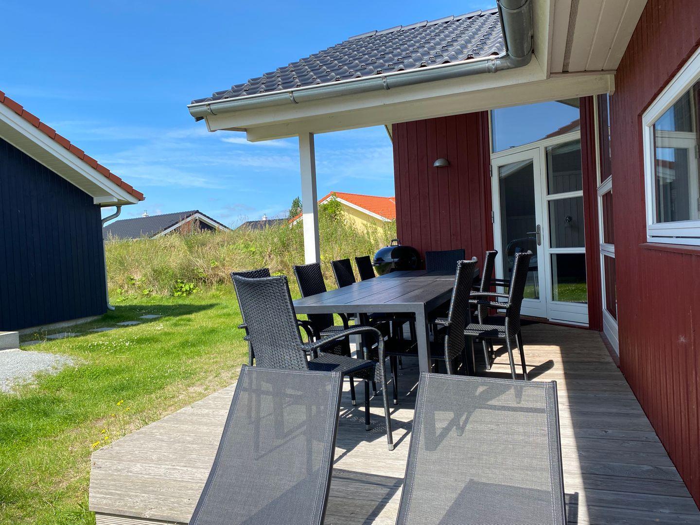 Vom Wohnbereich aus haben Sie Zugang zur teils überdachten, mit großem Gartentisch und Stühlen möblierten Terrasse, auf der Sie die langen Sommerabende genießen können. 2 Sonnenliegen stehen Ihnen ebenfalls zur freien Verfügung.
