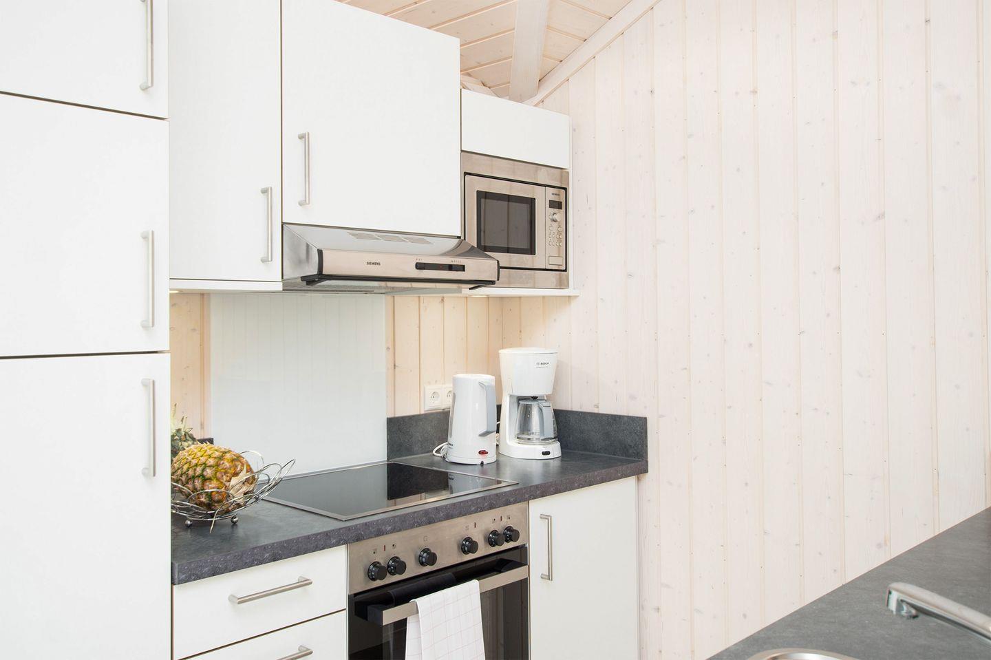 Die Küche ist vollwertig ausgestattet mit Spülmaschine, Kühlschrank mit Gefrierfach, Ceranfeld-Herd, Mikrowelle und Kaffeemaschine.
