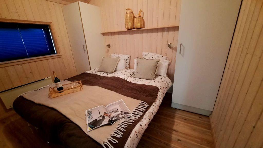 Die zwei Bereiche mit insgesamt 4 Schlafzimmern sind räumlich voneinander getrennt und auf gegenüberliegenden Seiten des Hauses platziert. Jeder Schlafbereich beinhaltet jeweils ein Schlafzimmer mit Doppelbett und ein Schlafzimmer mit zwei Einzelbetten. Über einem der Schlafbereiche gibt es zwei extra Schlafplätze auf dem Hems, eine Art Schlafboden. Hier tummeln gerne die Kinder. Zu beiden Schlafbereichen gehört jeweils ein Bad. Das große Badezimmer ist mit Whirlpool, Sauna und Dusche ausgestattet und das kleinere Bad mit Dusche. Ein Kinderbett und ein Kinderhochstuhl befinden sich im Haus.