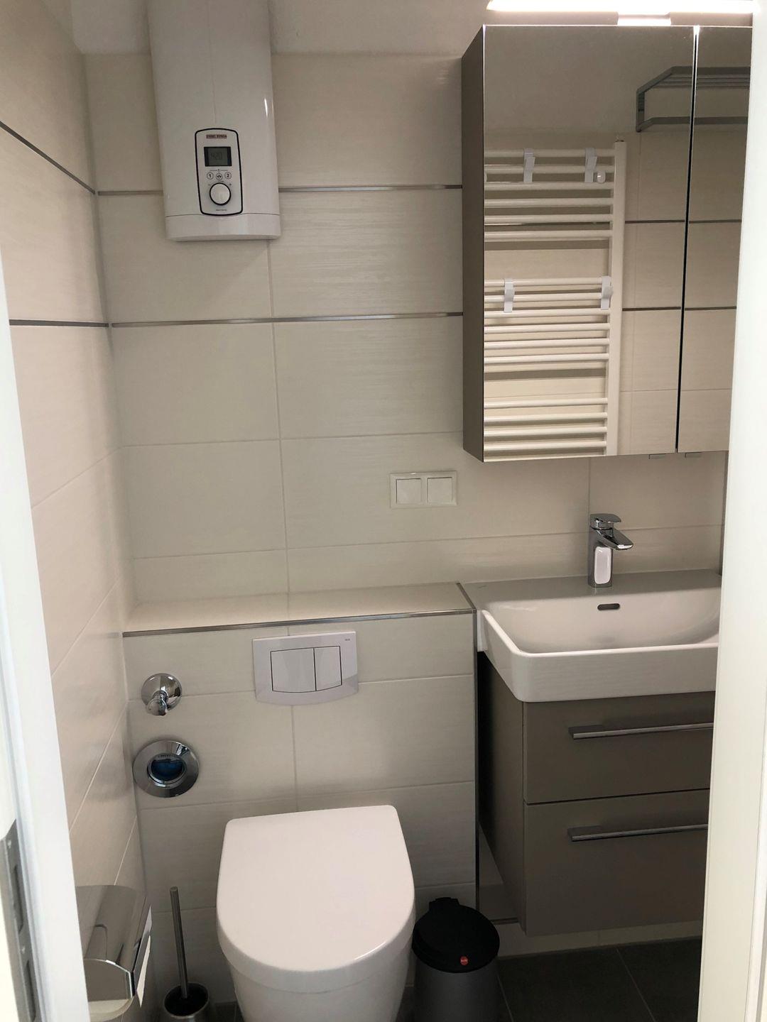 Das innenliegende Duschbad wurde ebenfalls 2021 komplett saniert und stimmt Sie stilvoll schon morgens auf einen herrlichen Urlaubstag ein. Die hochwertige Einrichtung besteht aus Dusche mit Glaswand, Hänge-WC, Handtuchheizkörper, Waschbeckenunterschrank mit Schubladen und einem beleuchteten Spiegelschrank mit 2 Steckdosen.
