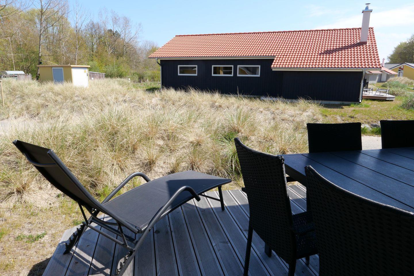 Vom Wohnbereich aus haben Sie Zugang zur teils überdachten, mit großem Gartentisch und Stühlen möblierten Terrasse, auf der Sie die langen Sommerabende genießen können. 2 Sonnenliegen stehen Ihnen ebenfalls zur freien Verfügung.