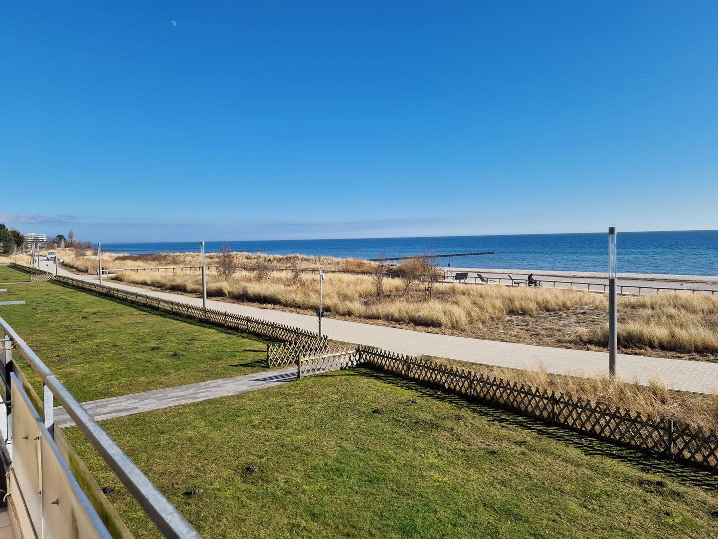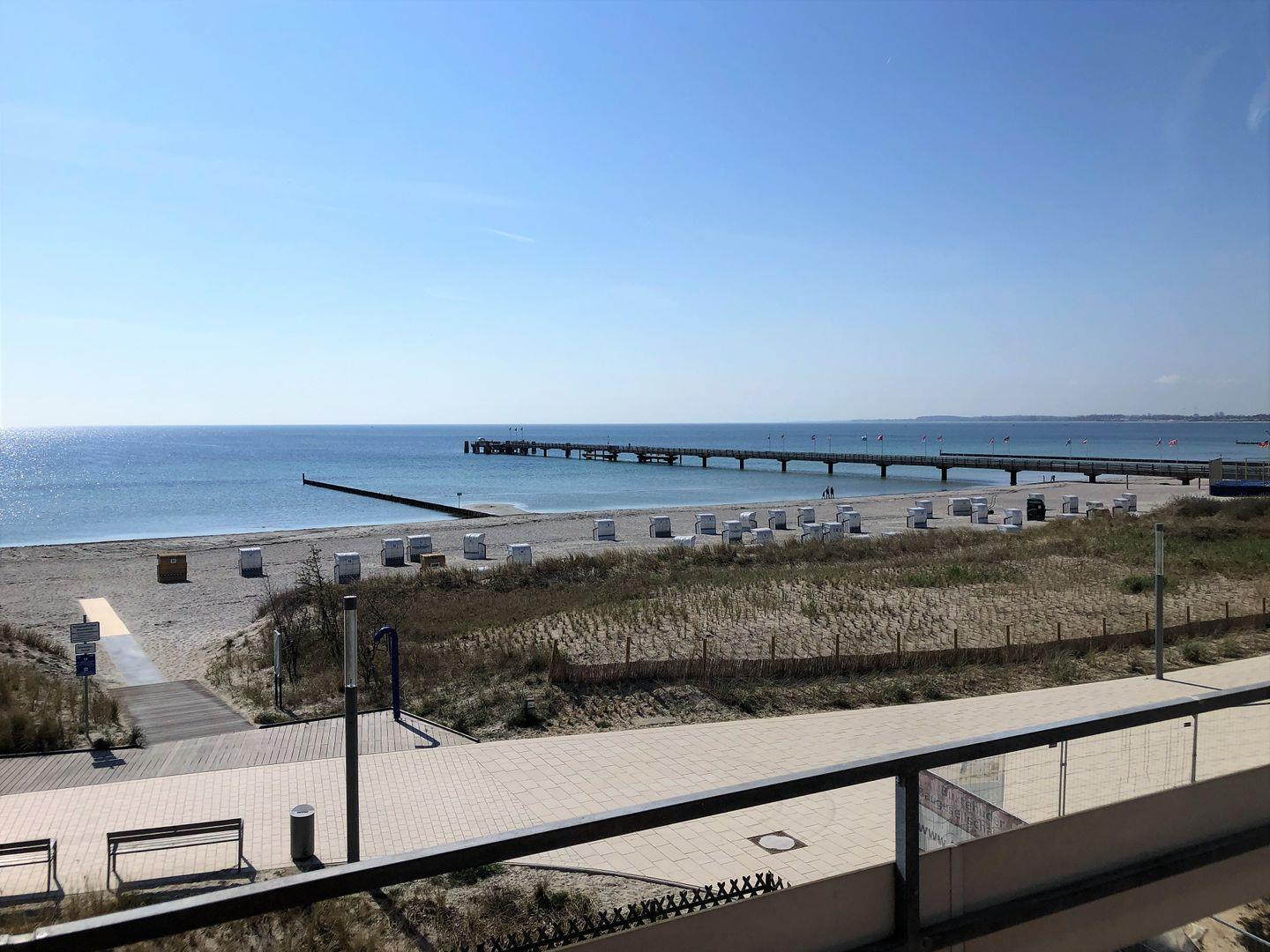Die 36 qm große Wohnung besticht durch den einmaligen Ausblick auf das Meer und die zentrale Lage zum neu gestalteten Seebrückenvorplatz.
