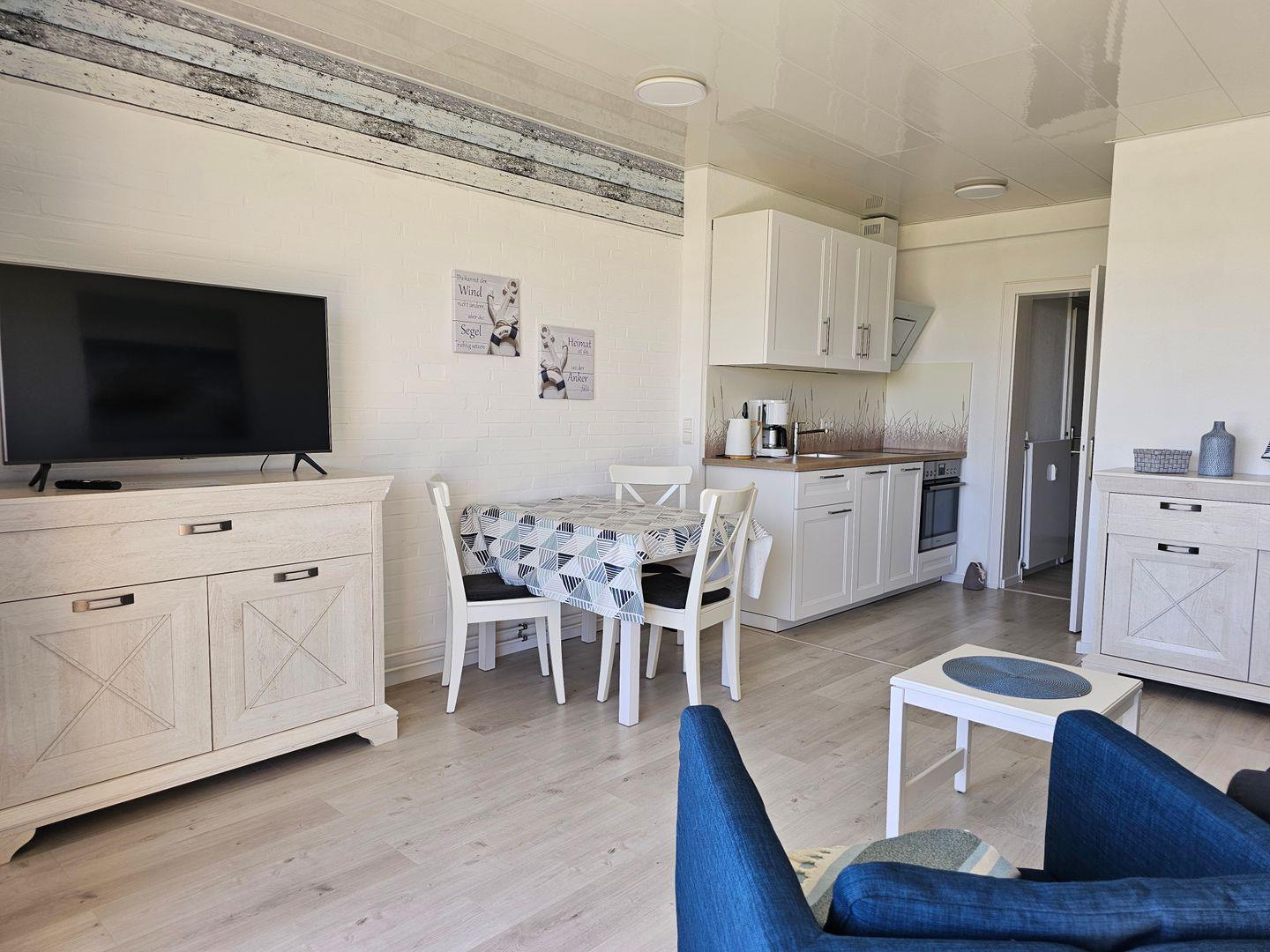 Im kombinierten Wohn-/ Ess-/ und Küchenbereich befindet sich eine sehr gut ausgestattete Küchenzeile mit Ceranfeld, Backofen und Geschirrspüler, diese ist hervorragend für eine Selbstversorgung geeignet.