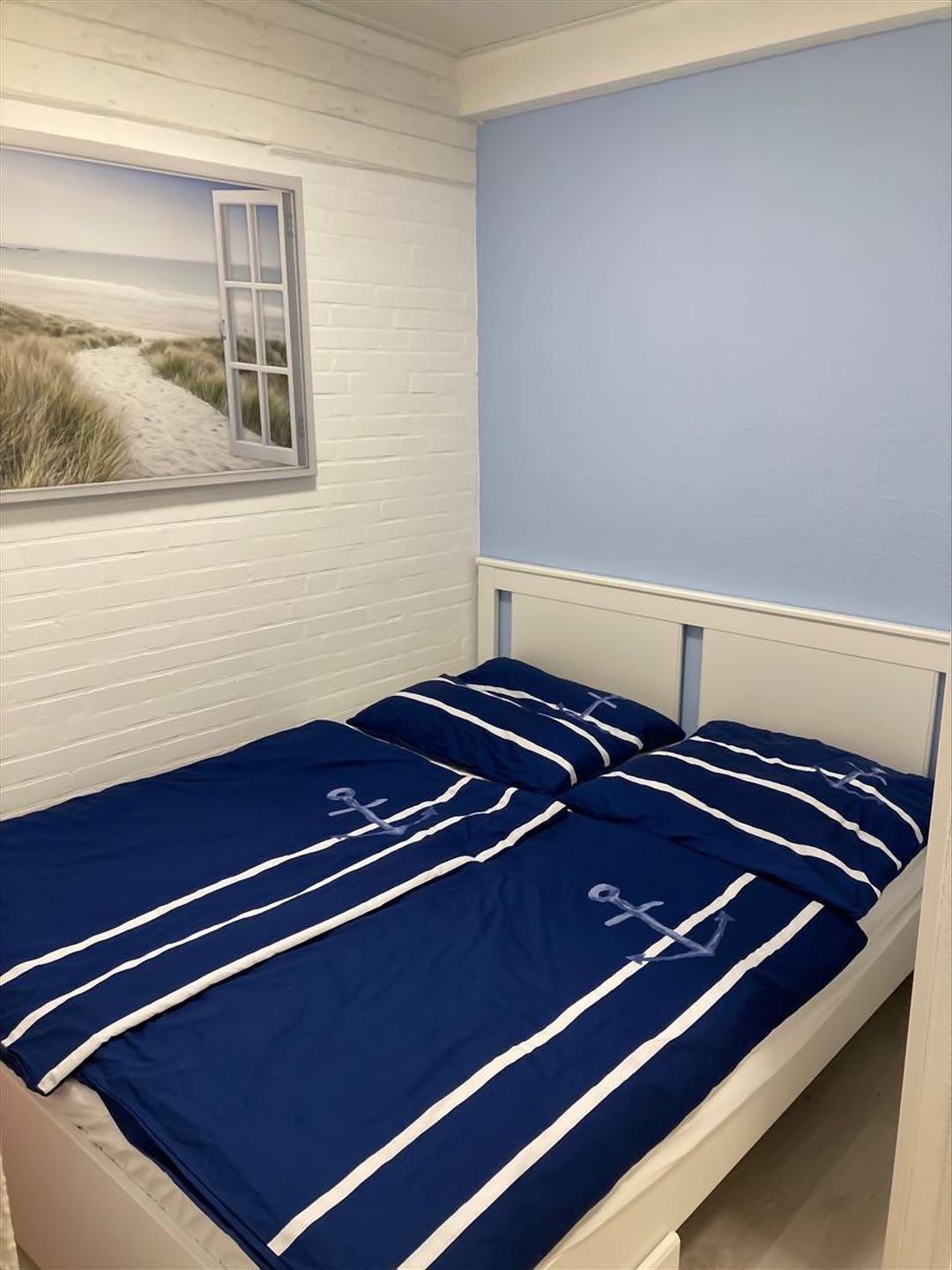 In dem Schlafraum mit zu öffnendem Oberlicht steht Ihnen ein Doppelbett (1,60 * 2,00m) für erholsame Nächte zur Verfügung.
