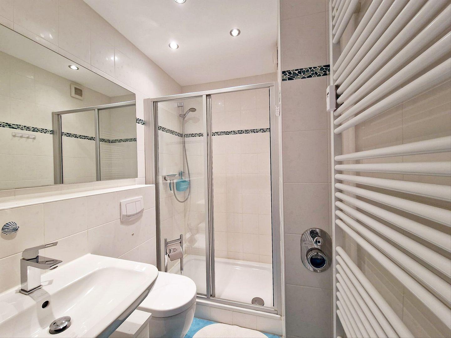 Das Badezimmer wurde ebenfalls modernisiert und verfügt über eine Dusche mit einer hochwertigen Glas-Duschwand,großem beleuchteten Spiegel und Handtuchheizkörper runden die Ausstattung des Duschbads ab.