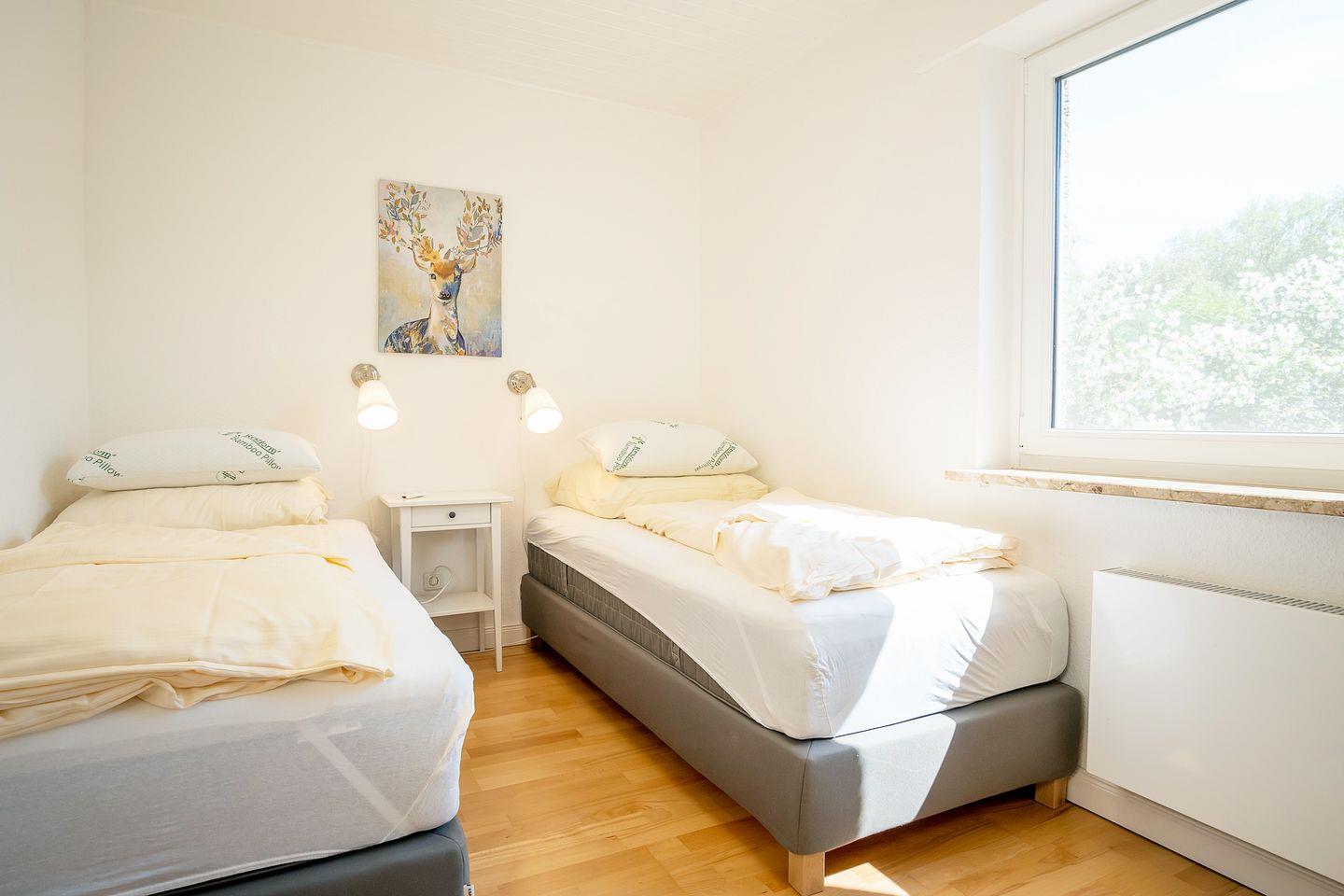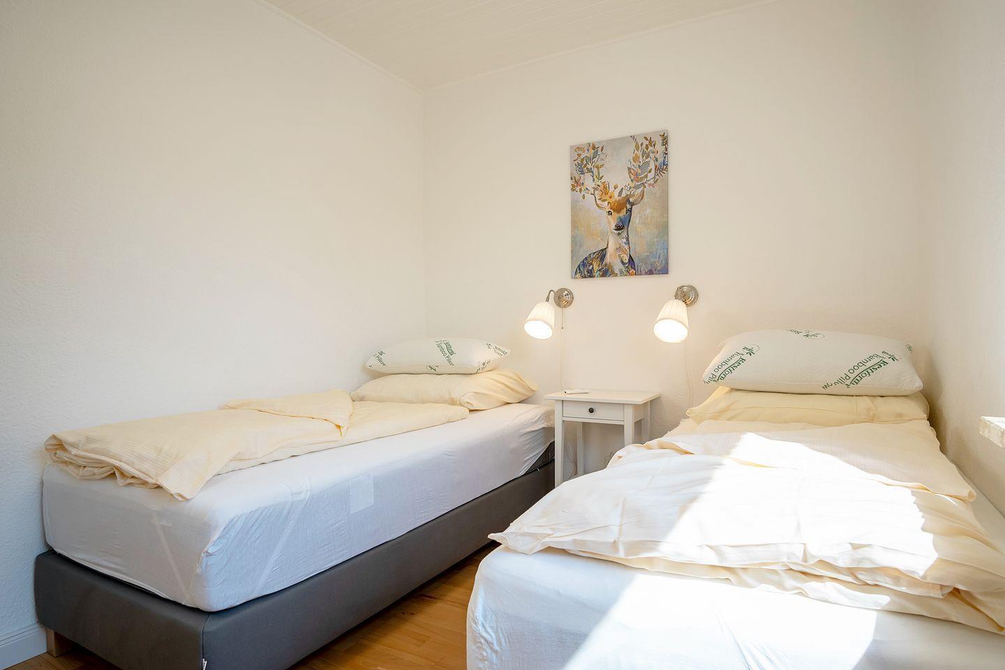Schlafkomfort finden Sie in allen Schlafzimmer, da diese mit hochwertigen Betten ausgestattet sind. In zwei Schlafzimmern befinden sich bequeme Doppelbetten (180*200 cm), in einem weiteren Schlafbereich sind zwei komfortable Einzelbetten vorzufinden, welche sich aber auch zu einem Doppelbett umfunktionieren lassen.