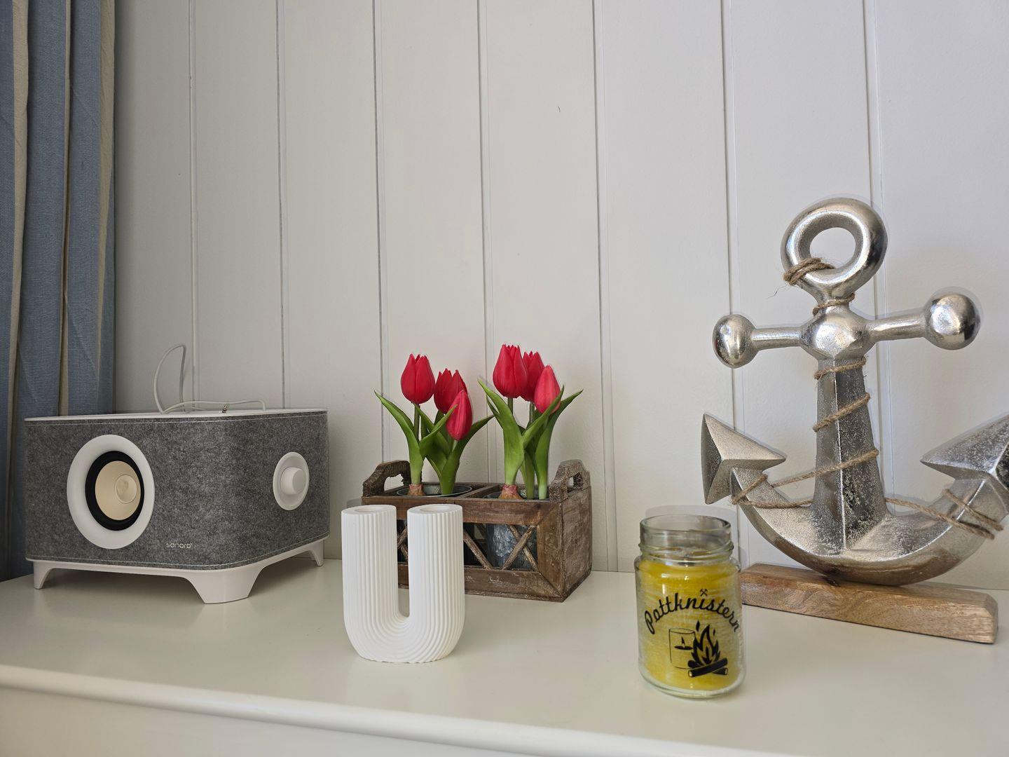Die hell eingerichtete Wohnung im Erdgeschoss für bis zu 3 Personen empfängt Sie in einem kleinen Flur von dem das Bad und das abgeteilte Schlafzimmer abzweigen.