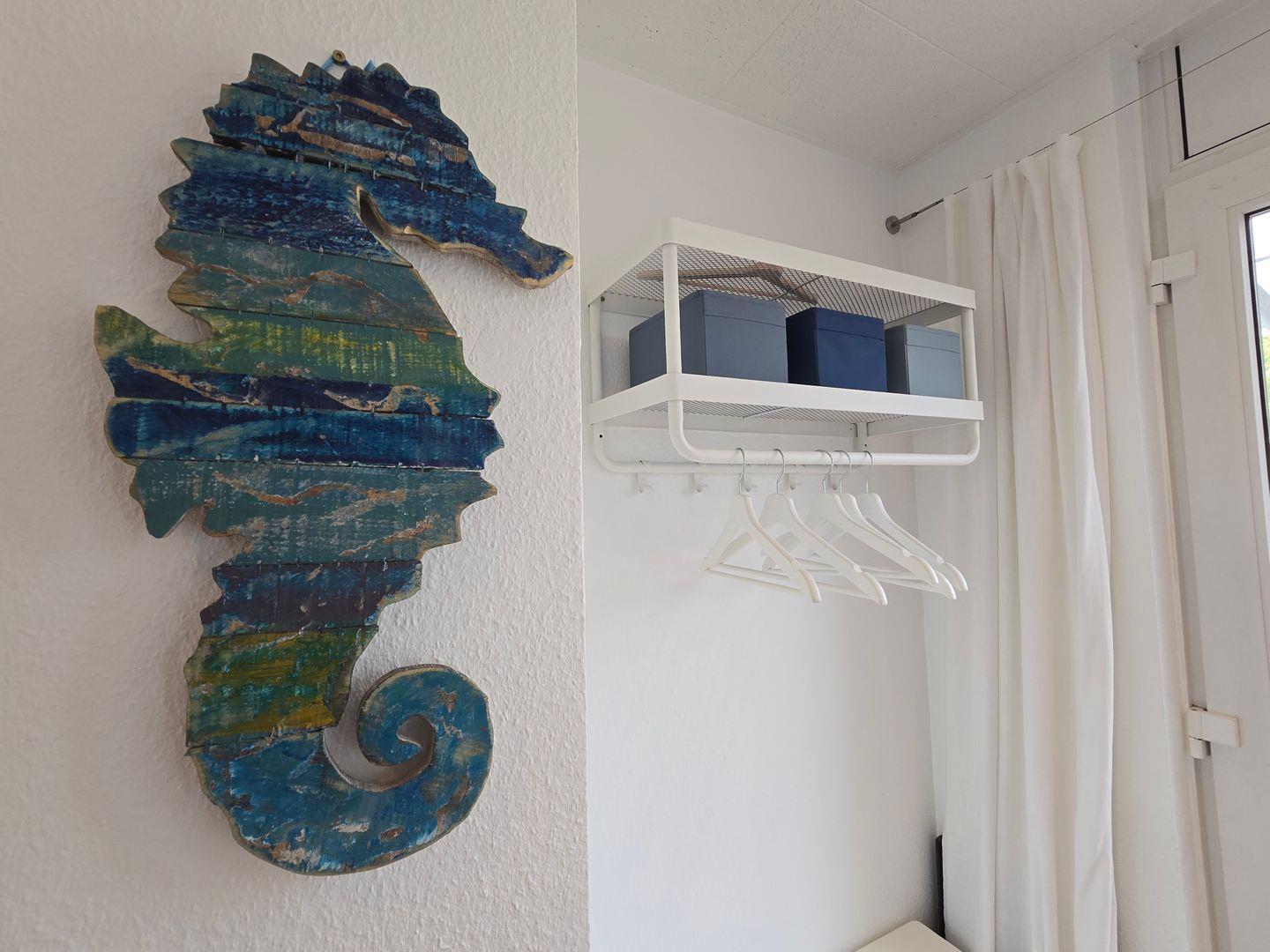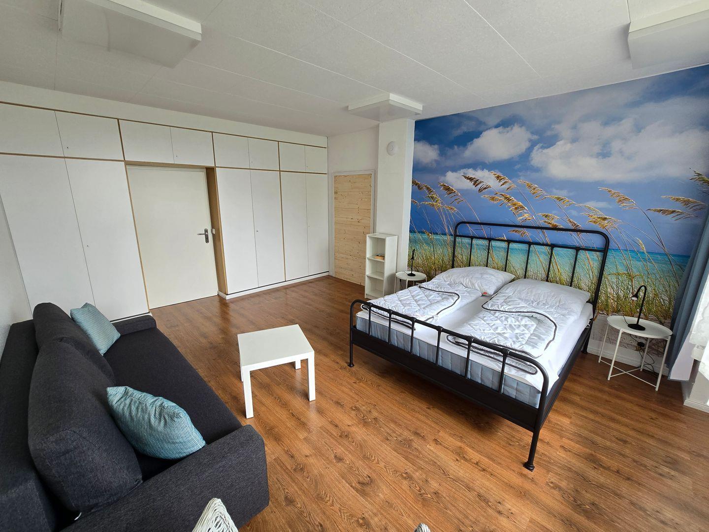 Im zweiten separaten Schlafzimmer steht ein Doppelbett (160*200 cm) für entspannte Urlaubsnächte bereit. Ein großer Kleiderschrank zum Verstauen der Urlaubsgarderobe, Couchgarnitur, Beistelltisch und Korbsessel komplettieren die Einrichtung. Die Schlafcouch bietet für bis zu zwei Gästen (140*200cm) ein weiteres gemütliches Nachtlager.