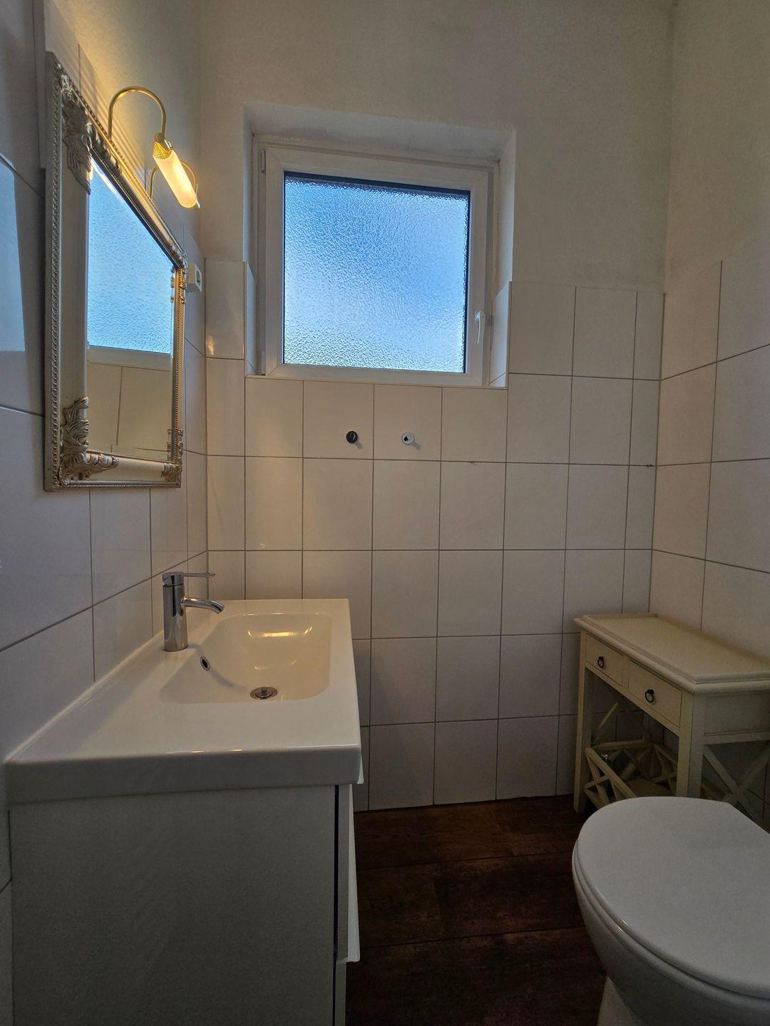 Dieses Objekt verfügt über ein Bad mit einer Duschwanne mit hohem Einstieg sowie zwei weitere separate Räume mit WC mit Spiegelschrank, Waschbecken mit Unterschrank und Ablagemöglichkeiten. Jedes Badezimmer kann über große Fenster belüftet werden.