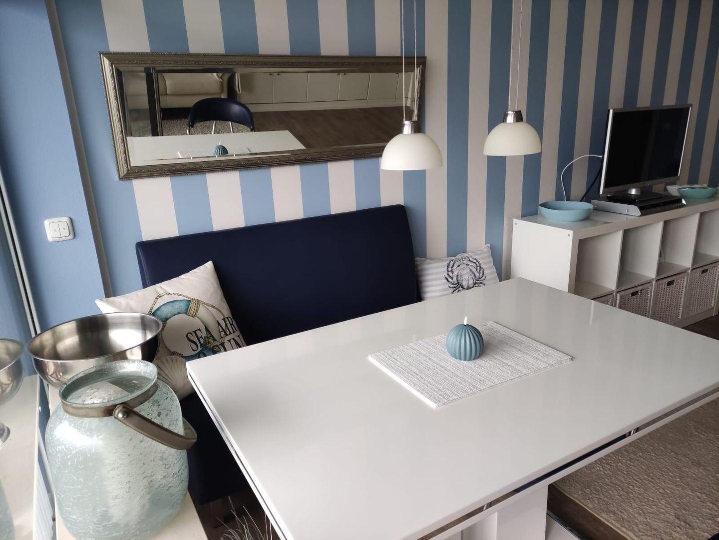 Ein weiteres Highlight ist der überdachte Balkon mit elektrischer Markise, auf dem Sie bei jedem Wetter die Aussicht genießen können. Hier stehen Ihnen Gartenmöbel und ein Strandkorb zum Relaxen zur Verfügung. Die Wohnung ist vollständig mit WLAN ausgestattet, so bleiben Sie stets online, um Ihre liebsten Urlaubsziele zu recherchieren oder Ihre schönsten Momente zu teilen.