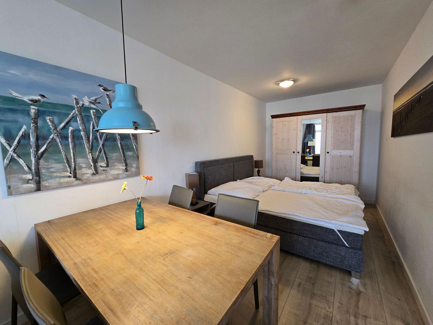 Mit einer Größe von 46 m² bietet die Ferienwohnung Platz für bis zu vier Gäste. Sie verfügt über ein geschmackvoll eingerichtetes Zimmer, das sowohl Schlaf- als auch Wohnbereich umfasst. Ein bequemes Sofa lädt zum Entspannen ein, während die gut ausgestattete offene Küche mit modernen Geräten wie Herd, Backofen, Spülmaschine und Kühlschrank keine Wünsche offenlässt. Bereiten Sie köstliche Mahlzeiten und genießen Sie diese im Essbereich, der nahtlos in das Wohnzimmer übergeht.
