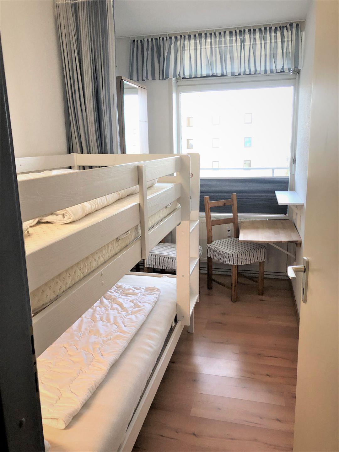 Der Schlafbereich im Wohn-/Schlafzimmer bietet zwei hochwertige Boxspring-Einzelbetten (je 90*200 cm) für eine entspannte Nacht sowie viel Platz im großen Schrank für ihre Urlaubsgarderobe. Im separaten Schlafzimmer finden Sie neben einem komfortablen Etagenbett (ebenfalls je 90*200 cm) einen Kleiderschrank mit großem Spiegel, zwei Stühle und einen kleinen Wandklapptisch.