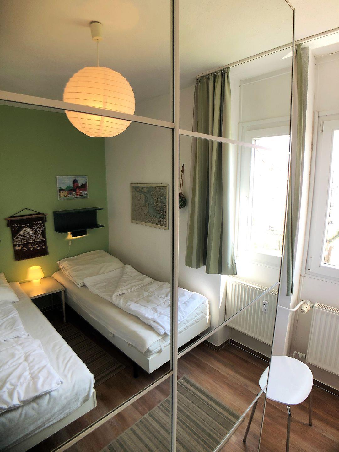 Im separaten Schlafzimmer befinden sich zwei bequeme Einzelbetten (80*190 cm & 90*190 cm) sowie ein großer Kleiderschrank mit Spiegeltüren. Das süd-westlich ausgerichtete Fenster bietet Ihnen einen zusätzlich seitlichen Meerblick sowie Blick über den Südstrand mit Promenade.