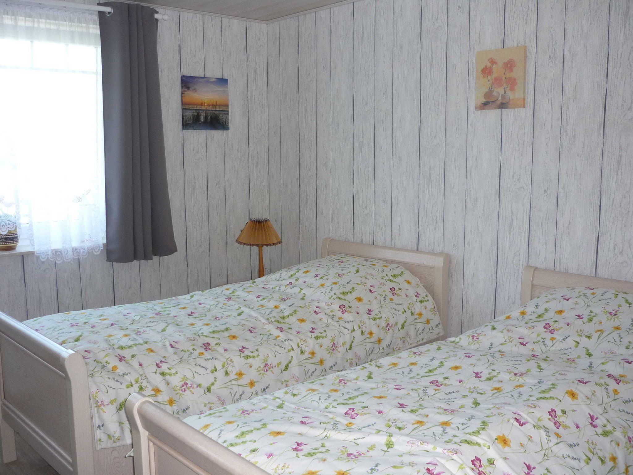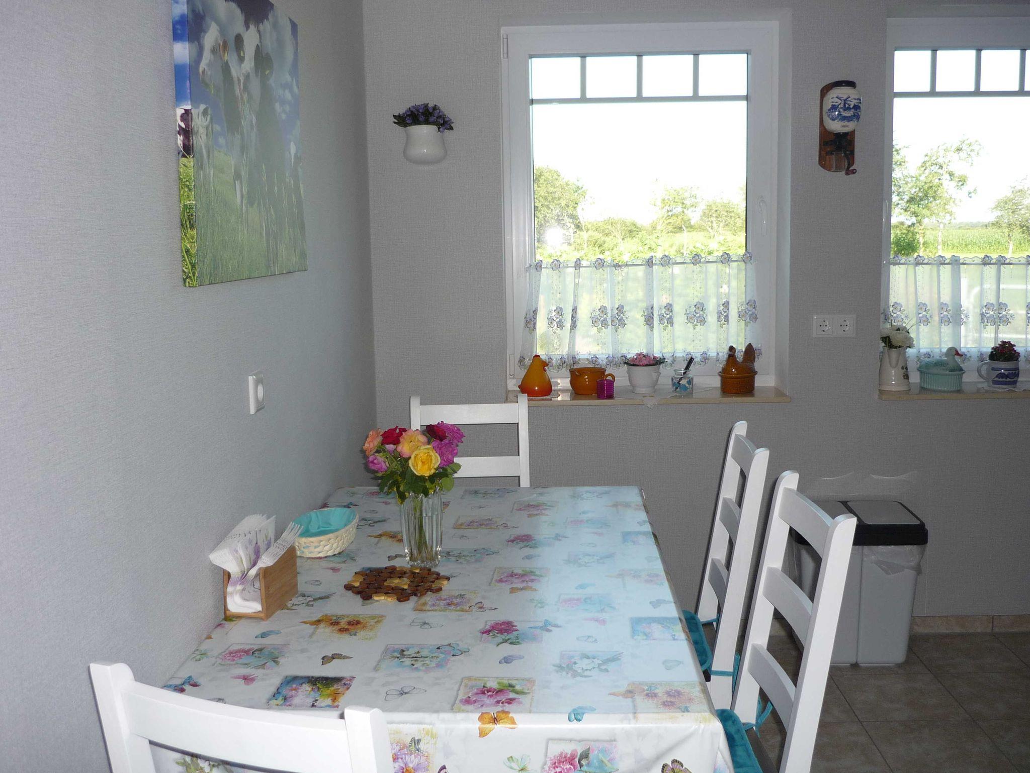 Ferienwohnung im Erdgeschoss, 115 qm. 2 Schlafzimmer, Wohnzimmer, Küche, Dusche/WC und Gäste-WC. Es ist ein Babybett vorhanden.
