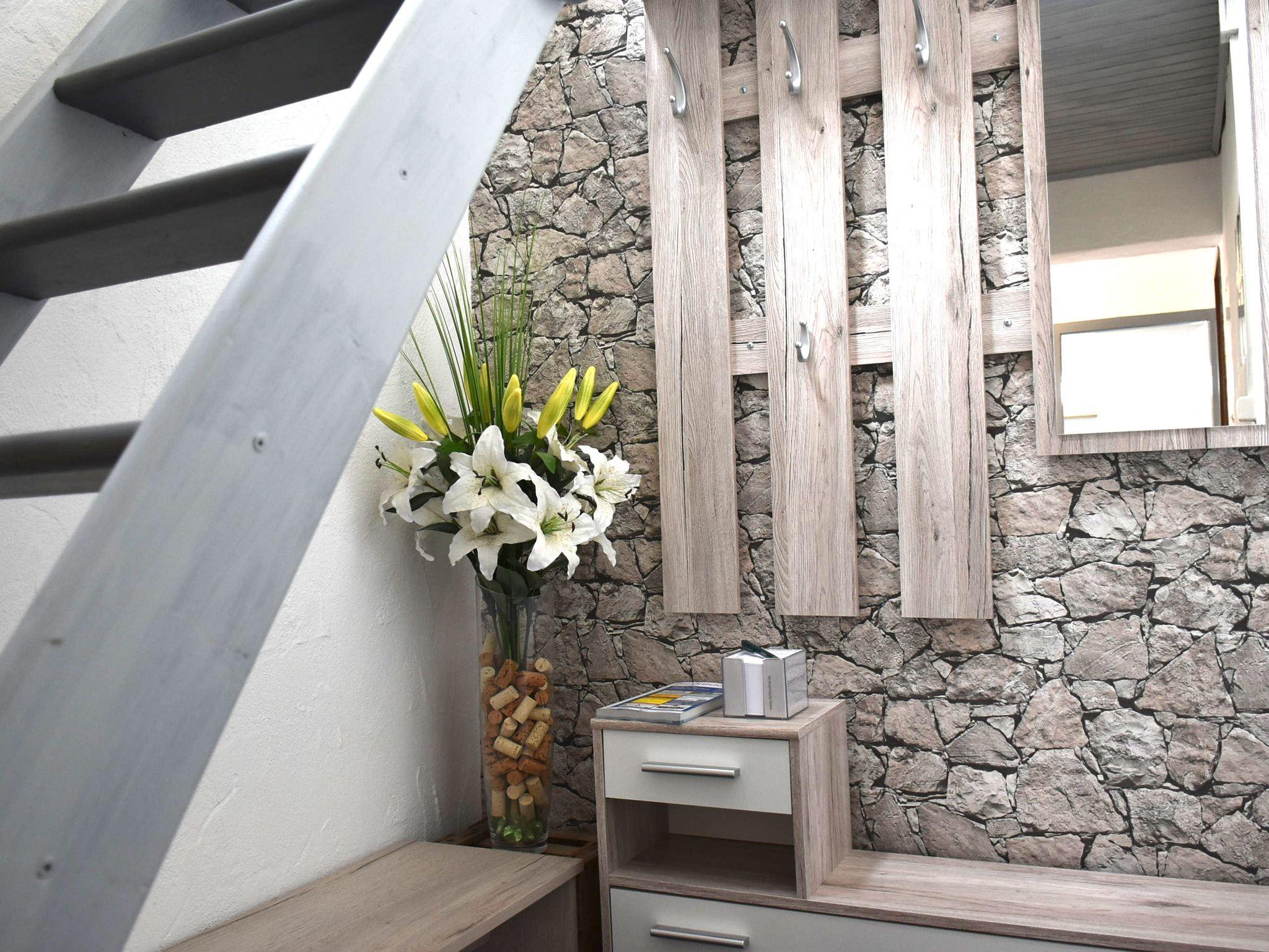 Liebevoll und gemütlich eingerichtete Nichtraucherwohnung bietet auf 85 m² Platz für bis zu 6 Pers. auf 2 Ebenen. Wohnzimmer mit Schlafcouch, TV u. DVD-Player, Schlafzimmer mit komfortablem Doppelbett u. geräumigem Schrank, auf Wunsch Kinderbett zusätzlich möglich, vollständig eingerichtete Küche mit großzügiger Essecke, modernes Tageslicht-Bad, eigene Terrasse u. Garten, Parkplatz im Hof, W-Lan, Grill u. viele weitere Extras im Preis enthalten. Nutzung einer Waschmaschine sowie Trockner ist auf Anfrage möglich. Wir freuen uns auf Sie !