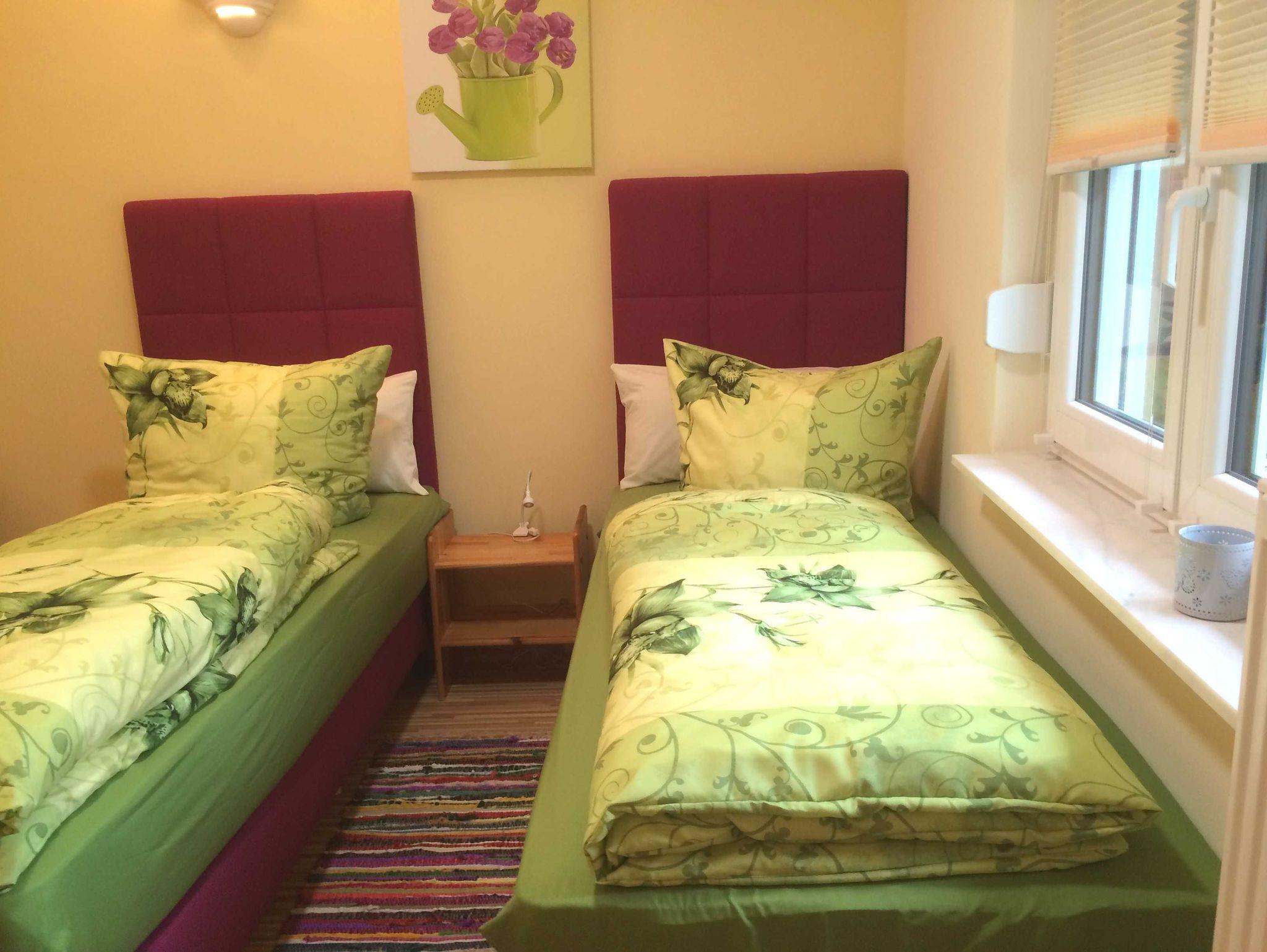 1 Schlafzimmer mit 2 Twinbetten Original LYONBED® Boxspringbetten PREMIUM ( 2x 80×200 cm ).Ruhiges Wohnen mit eigenen Eingang direkt im Garten.