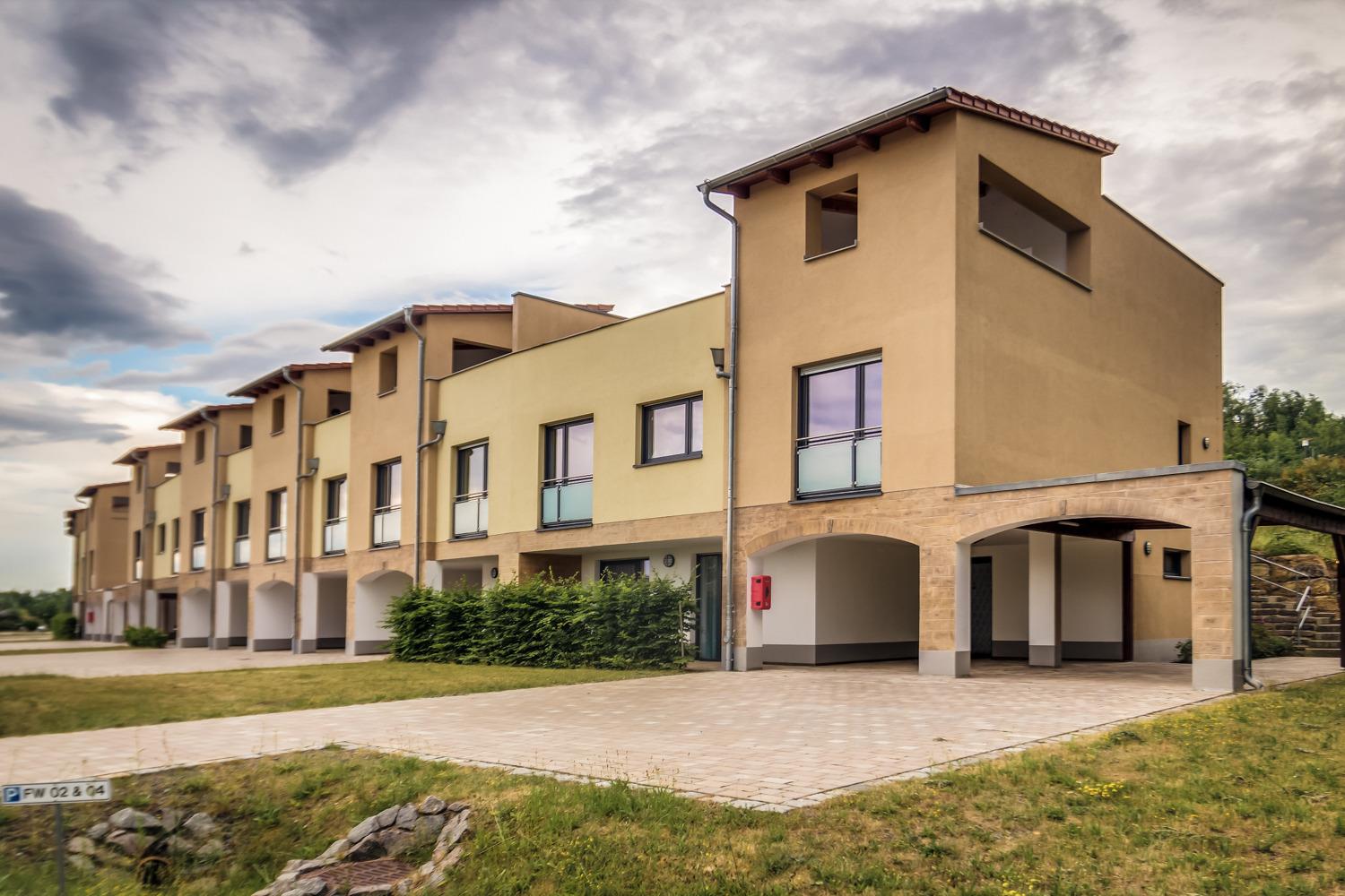 Die komfortablen 14 Hafenhäuser und 23 Dünenhäuser Comfort mit offenem Wohn-/Essbereich, Seeterrasse und Sauna zeichnen sich durch den individuellen architektonischen Charme aus.