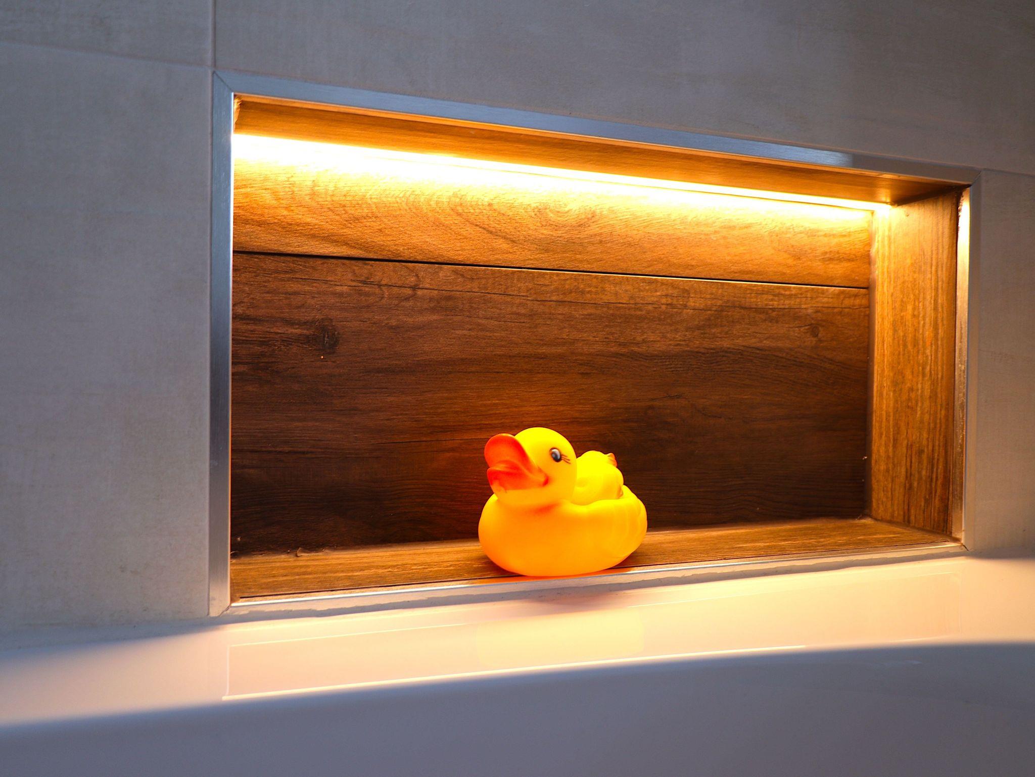 Bodentiefe Duschen, beheizter Spiegel, sowie Heizkörper mit integriertem Handtuchtrockner sind ebenso Annehmlichkeiten, wie die wunderschöne Ambientebeleuchtung.
