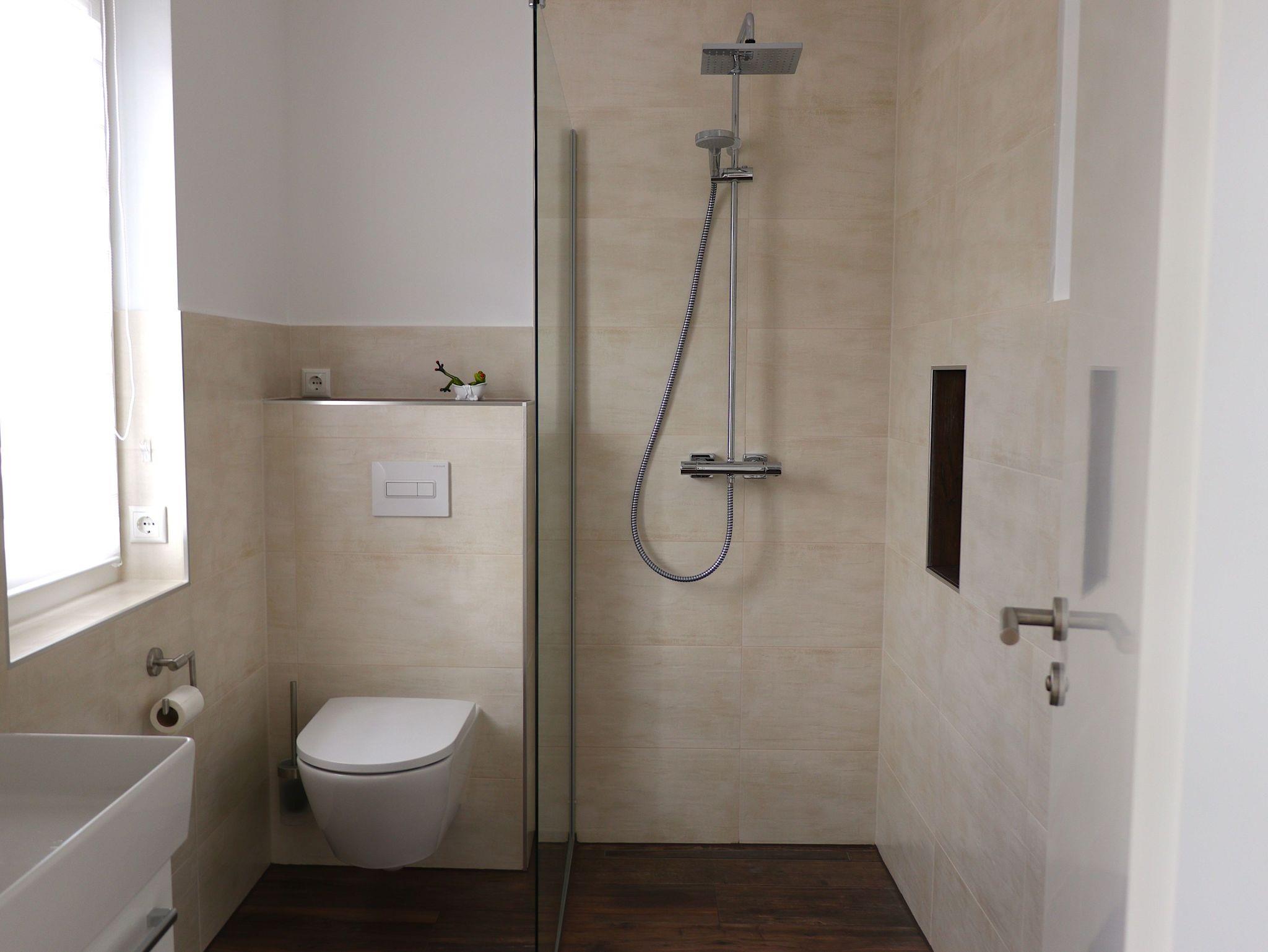 • Gästebad mit bodengleicher Dusche, WC, beheizbarer Handtuchhalter, Ambientebeleuchtung