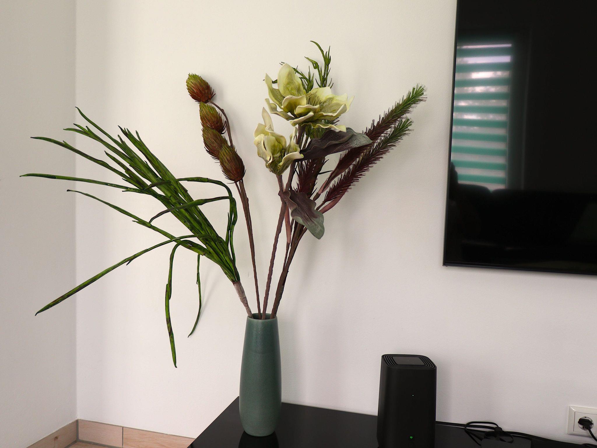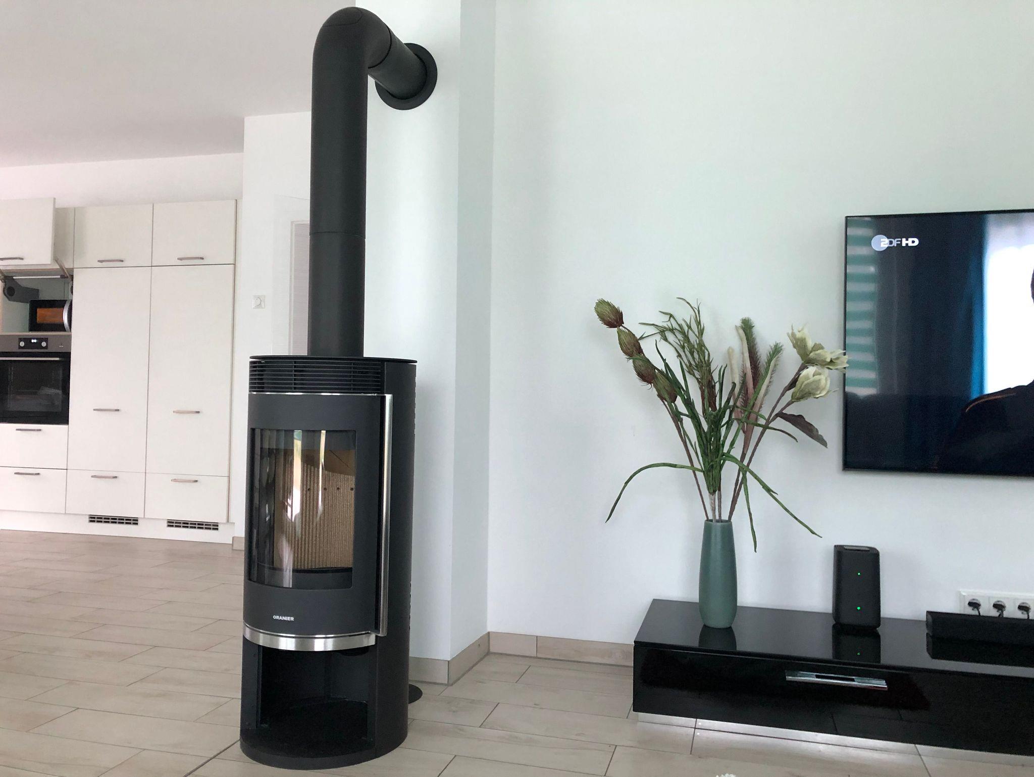 • Wohnraum mit Kaminofen, Smart TV, Soundbar